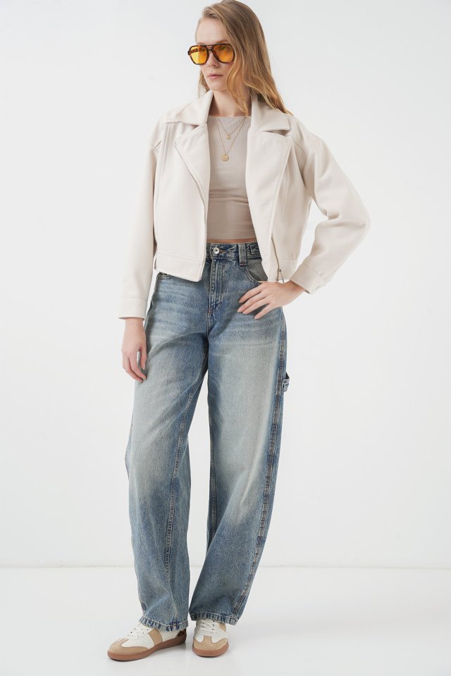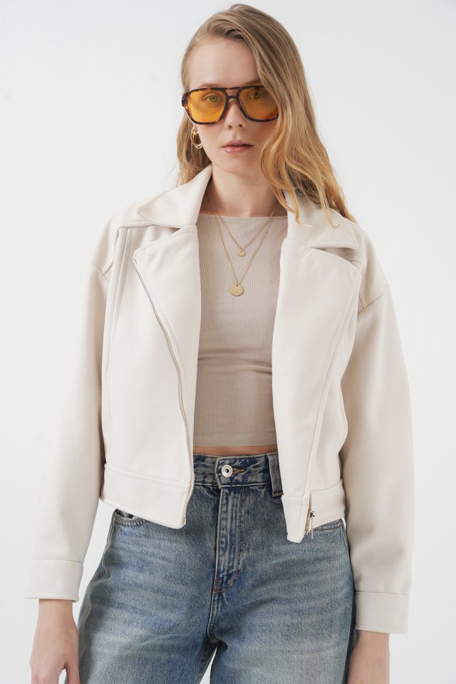0717 Kısa Kaşe Ceket - Ekru