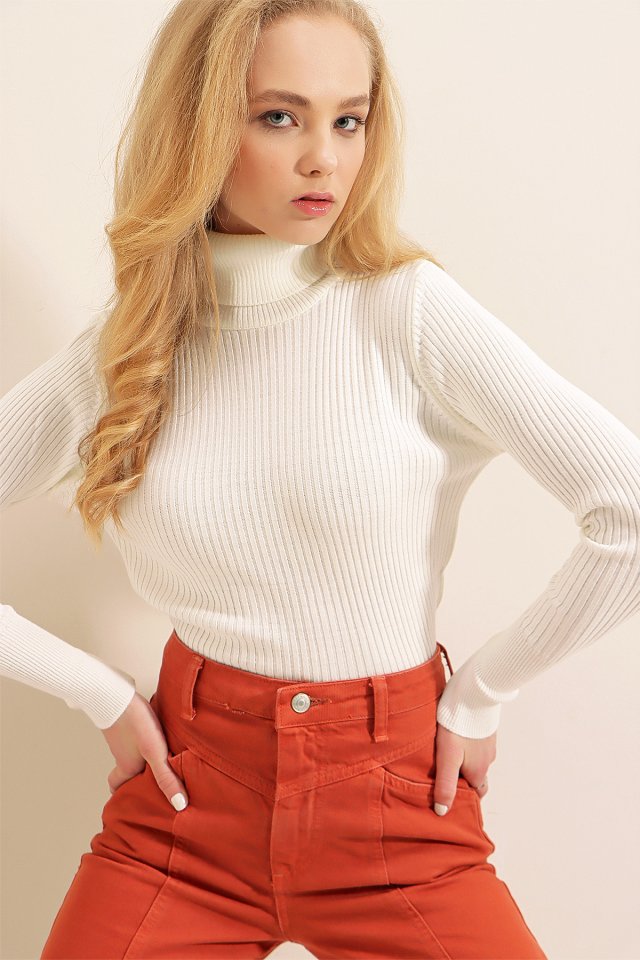 10311 Balıkçı Yaka Triko Kazak - Beyaz