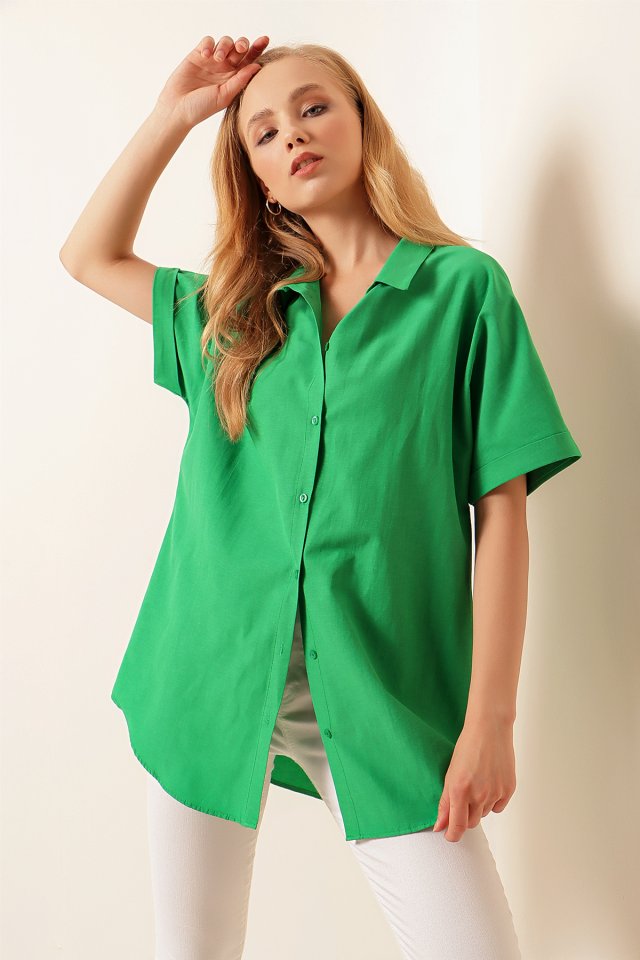 20120 Oversize Kısa Kollu Gömlek - A.Yeşil