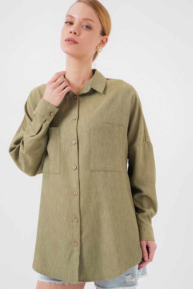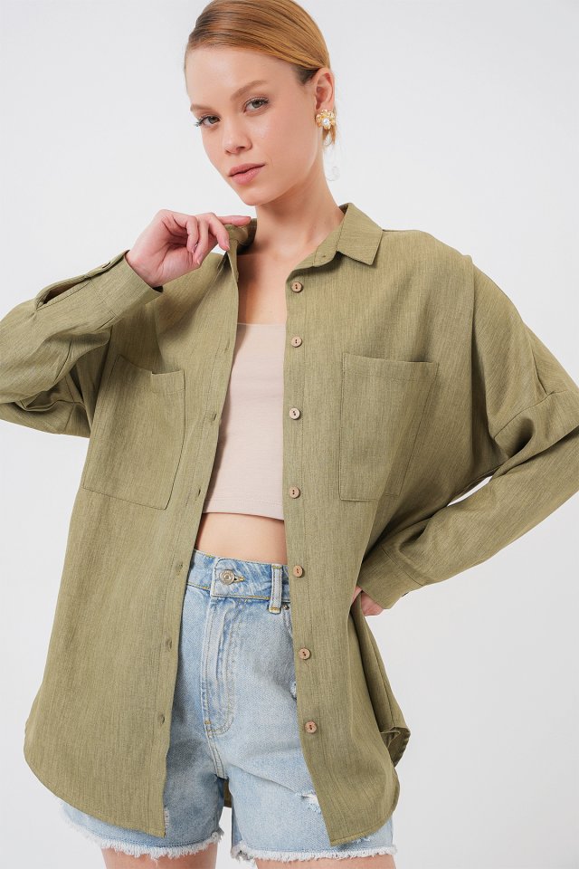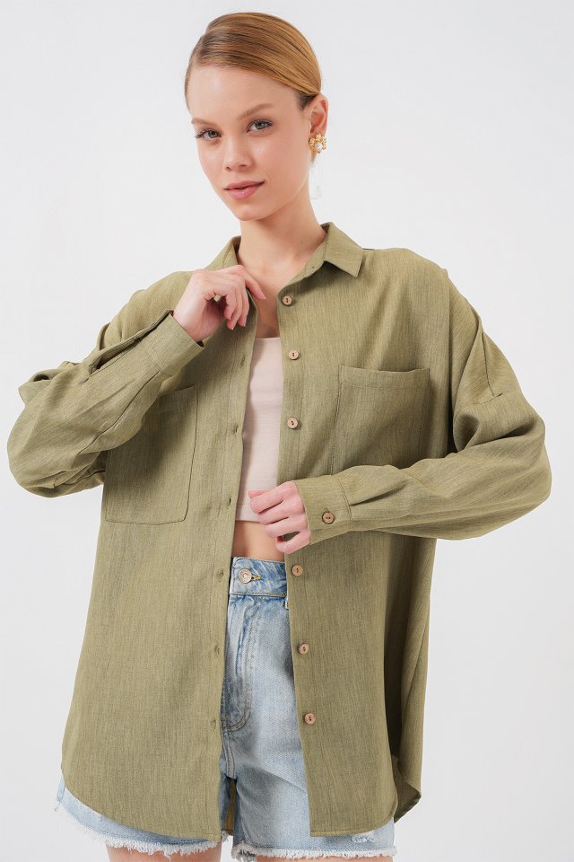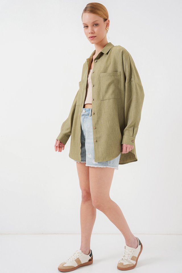 20126 Oversize Keten Gömlek - Çağla