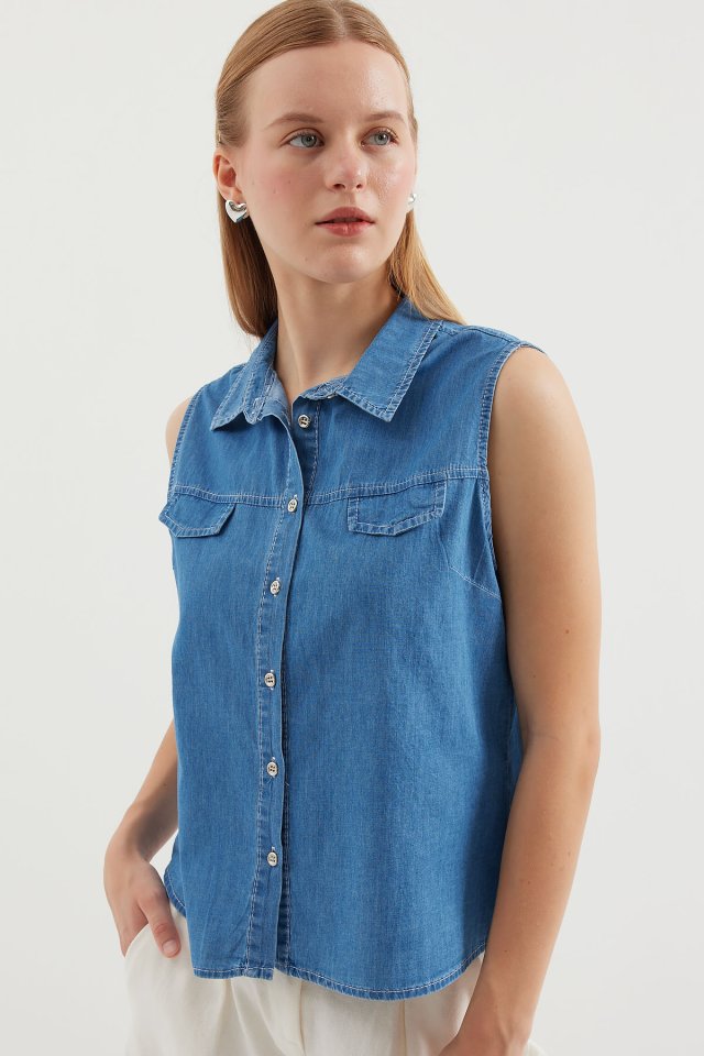 20257 Sıfır Kol Kot Gömlek - Lacivert