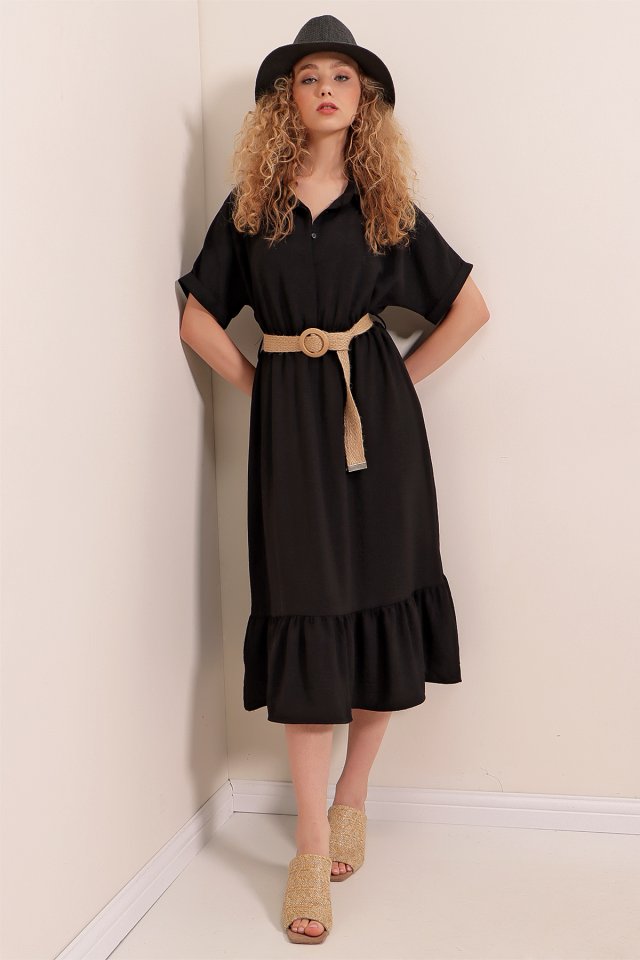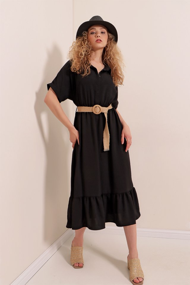2292 Kemerli Elbise - Siyah