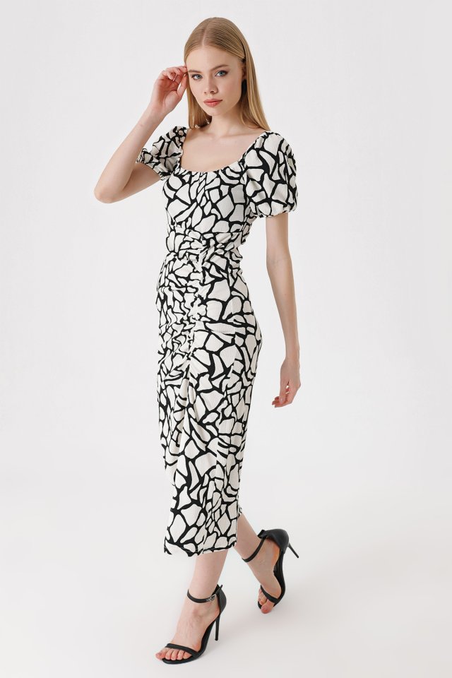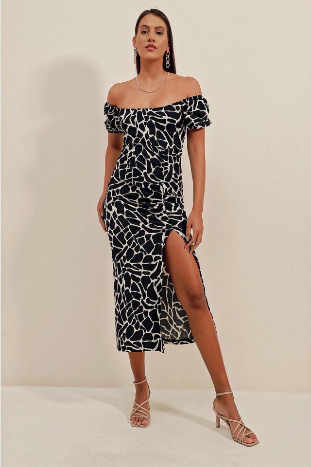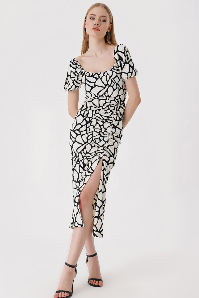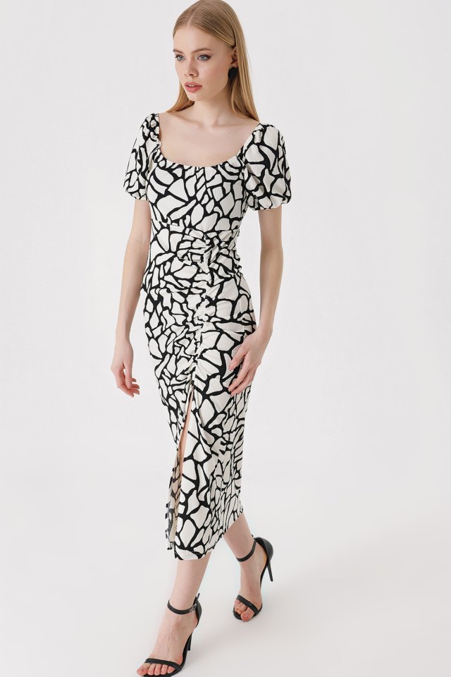 2396 Yırtmaçlı Yazlık Örme Elbise - Bisküvi