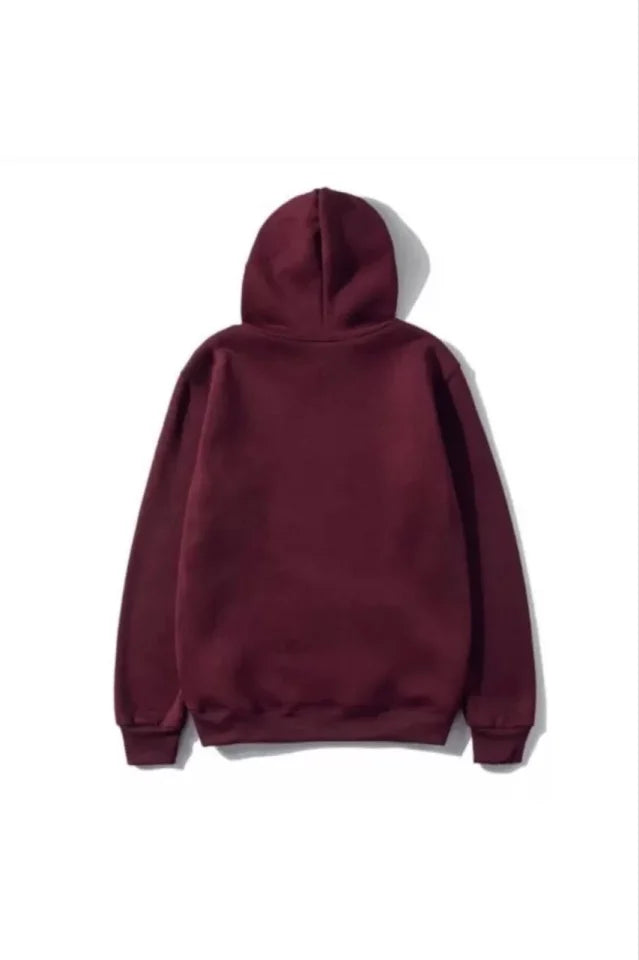 3 İplik Pamuklu Unisex Kapşonlu Sweetshirt - Bordo
