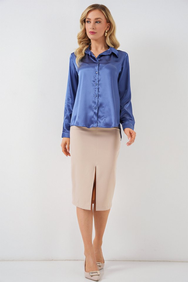 3964 Hafif Dökümlü Saten Gömlek - C.Lacivert