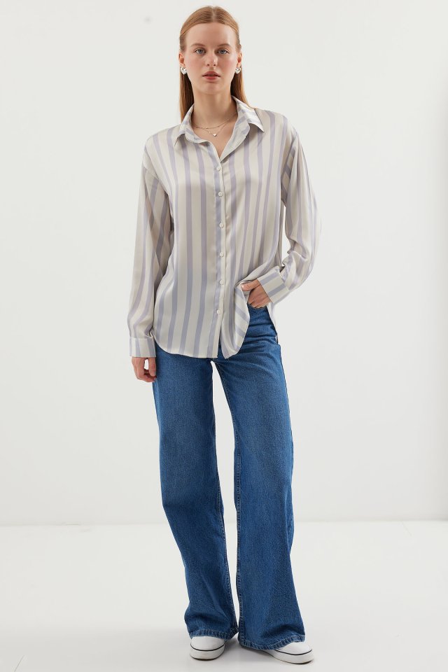3964 Hafif Dökümlü Saten Gömlek - F.Gri