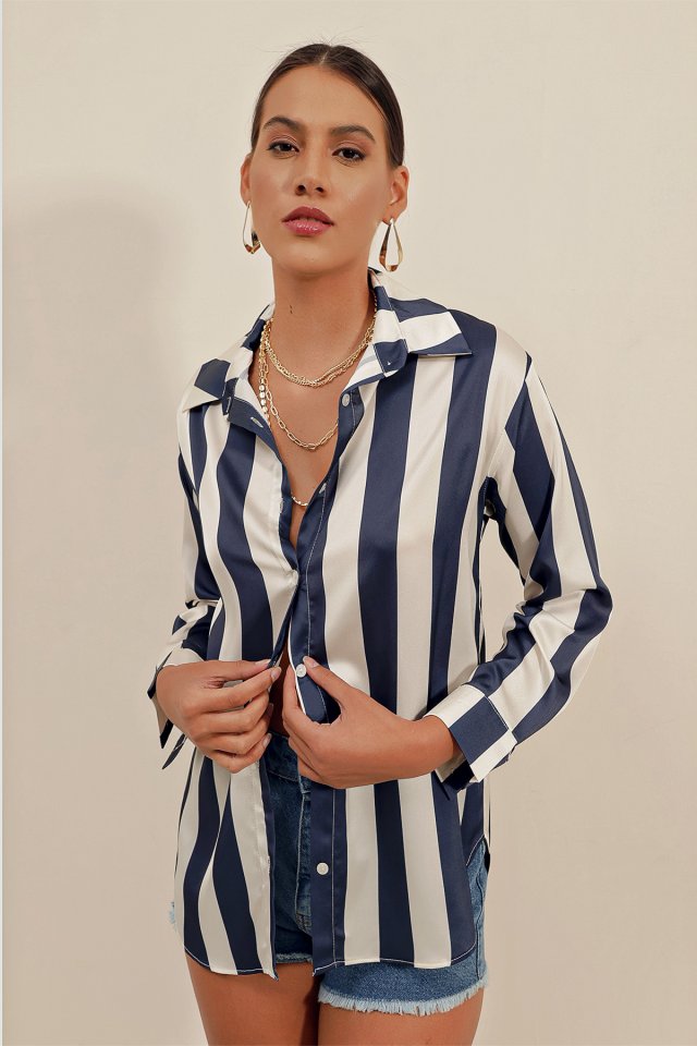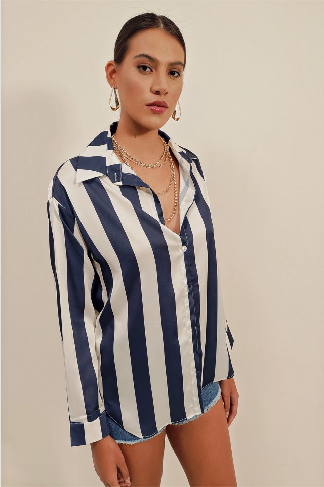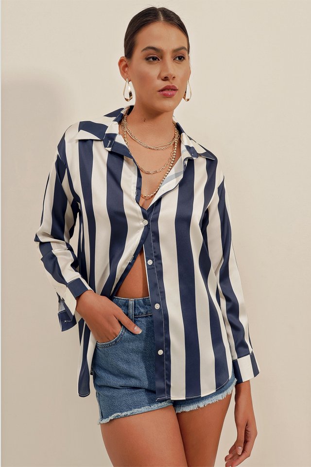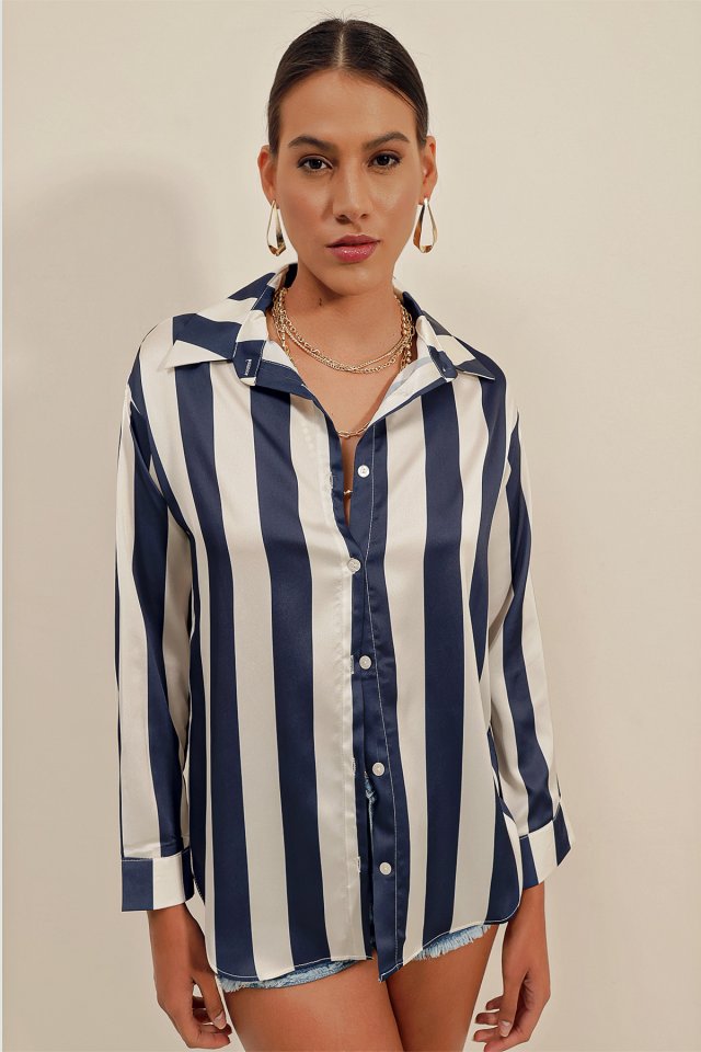 3964 Hafif Dökümlü Saten Gömlek - Siyah