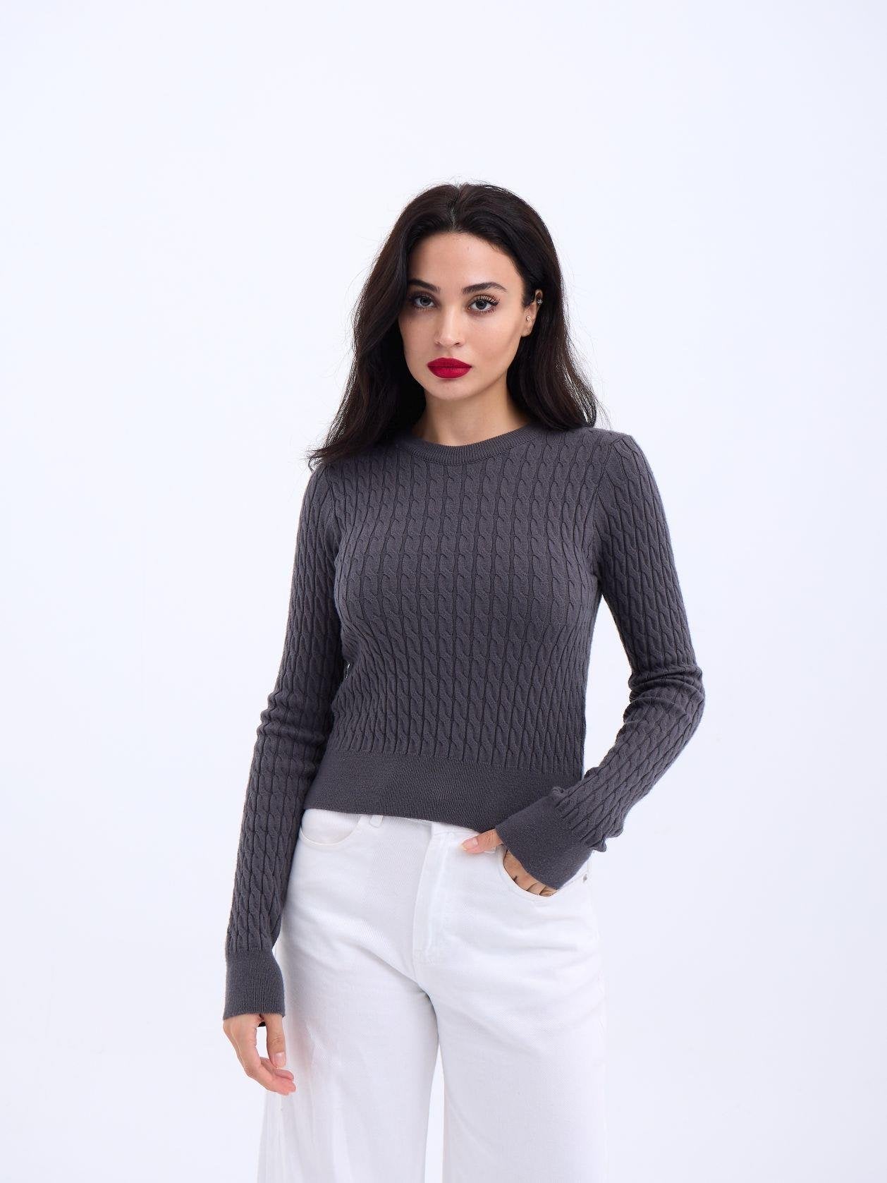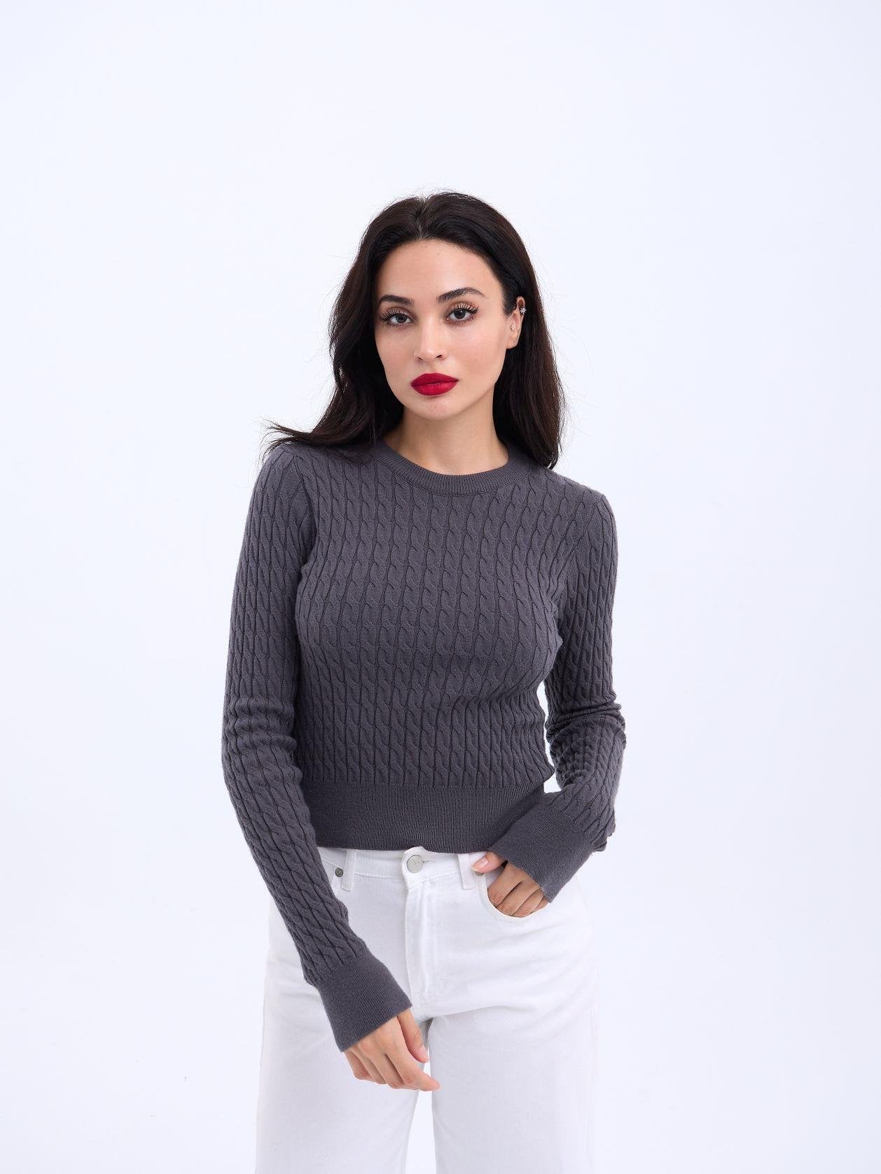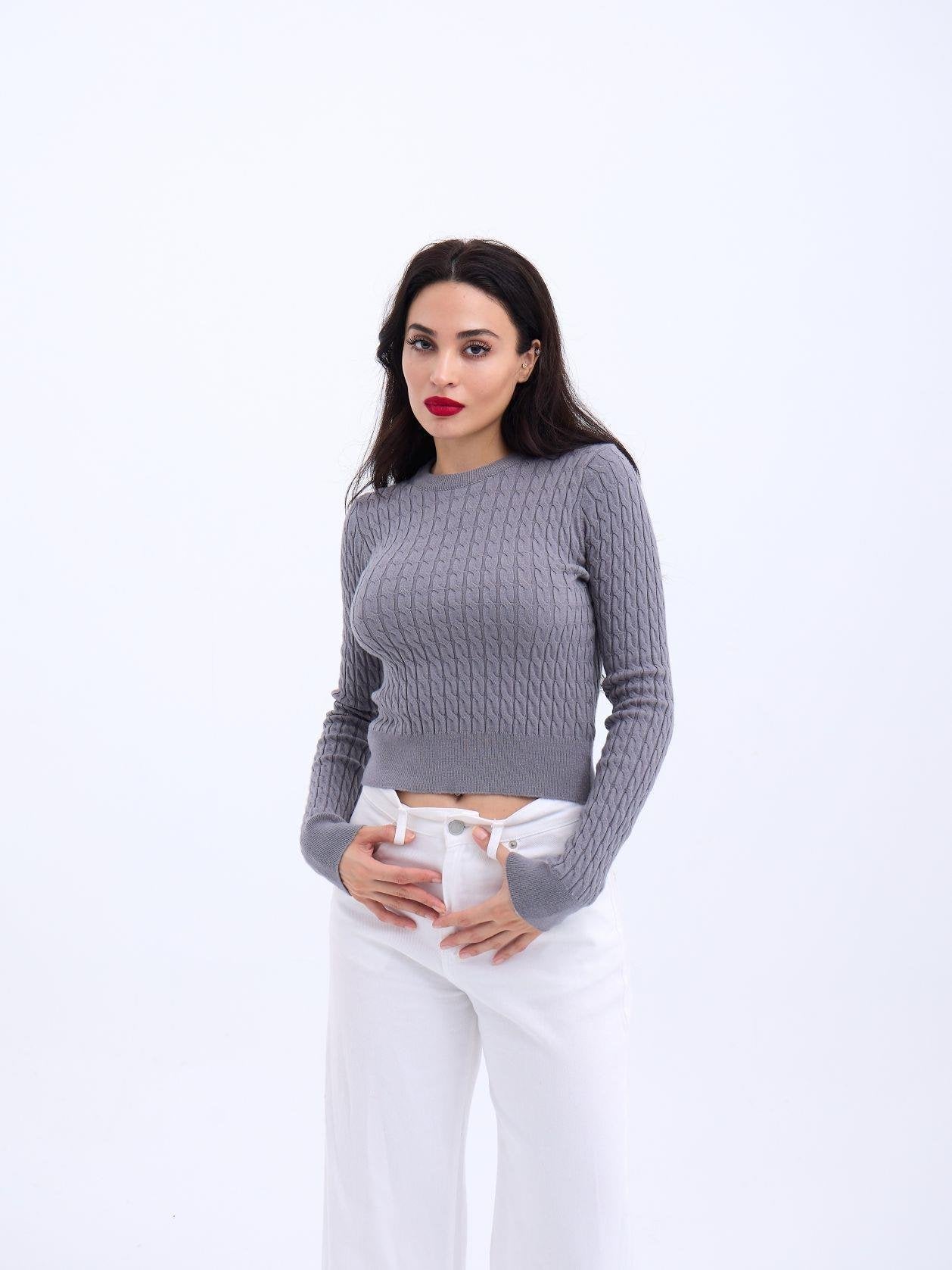 4211 TRİKO SAÇ ÖRGÜ KAZAK-GRİ
