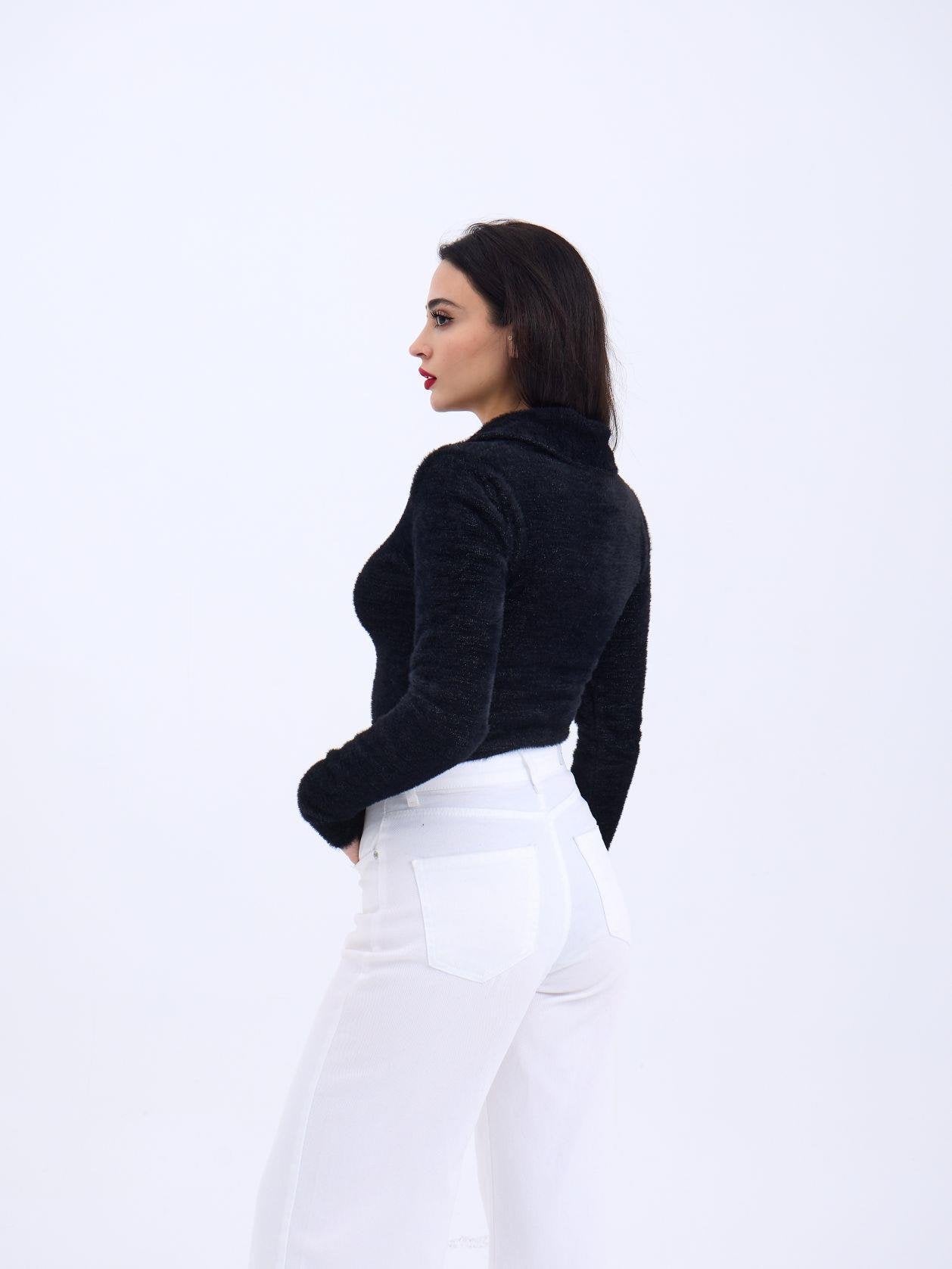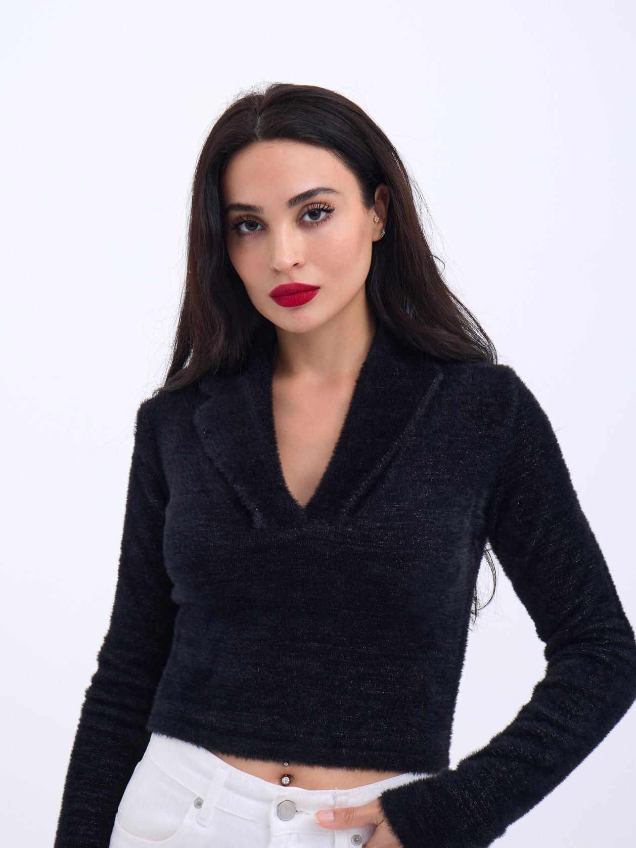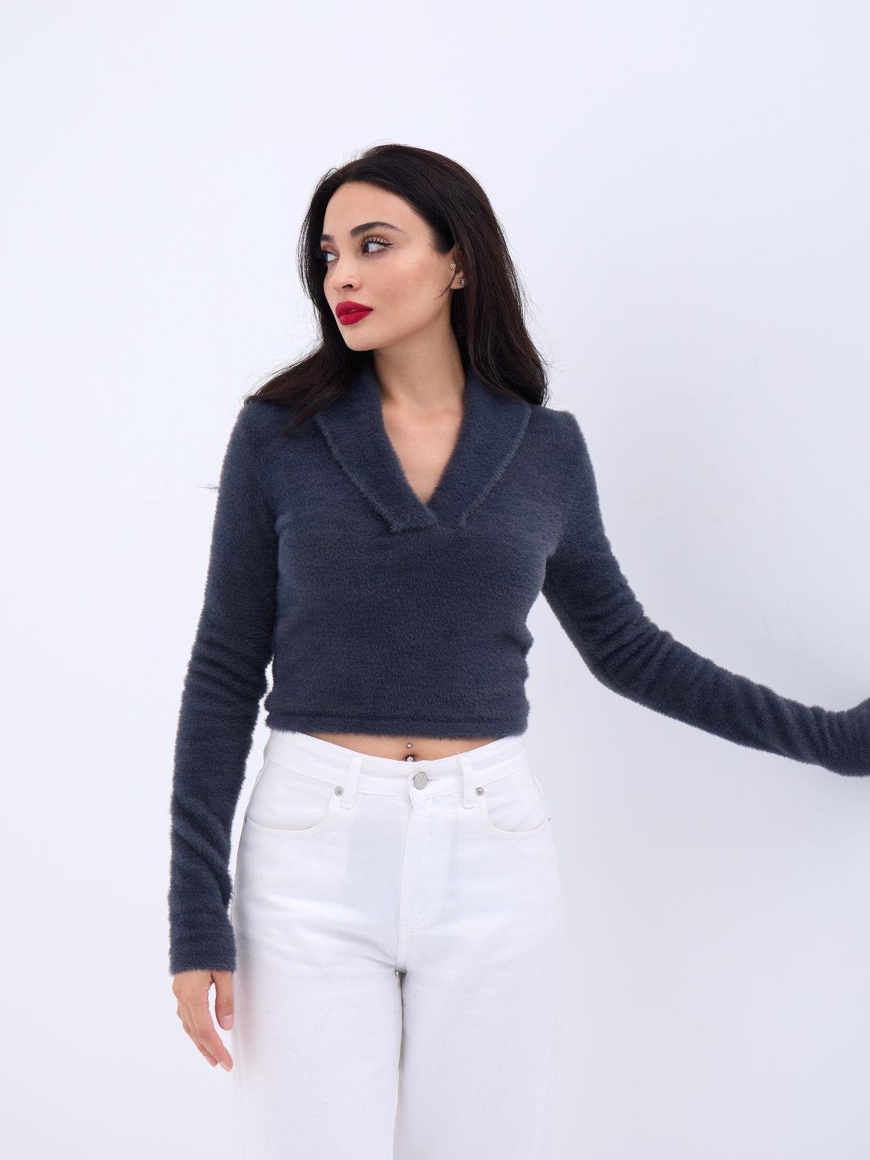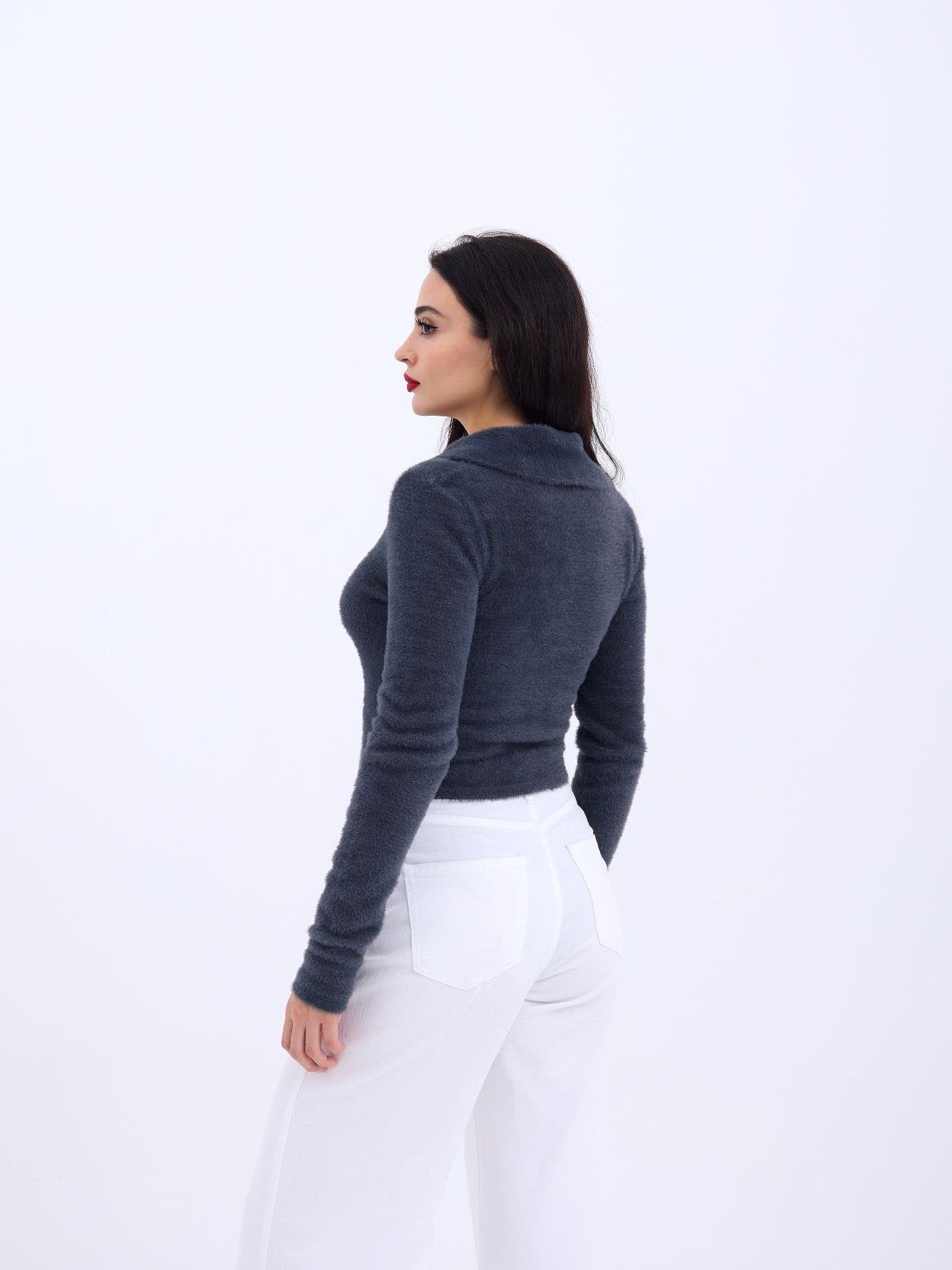 42531 TRİKO SİMLİ YAKALI CROP-ANTRASİT