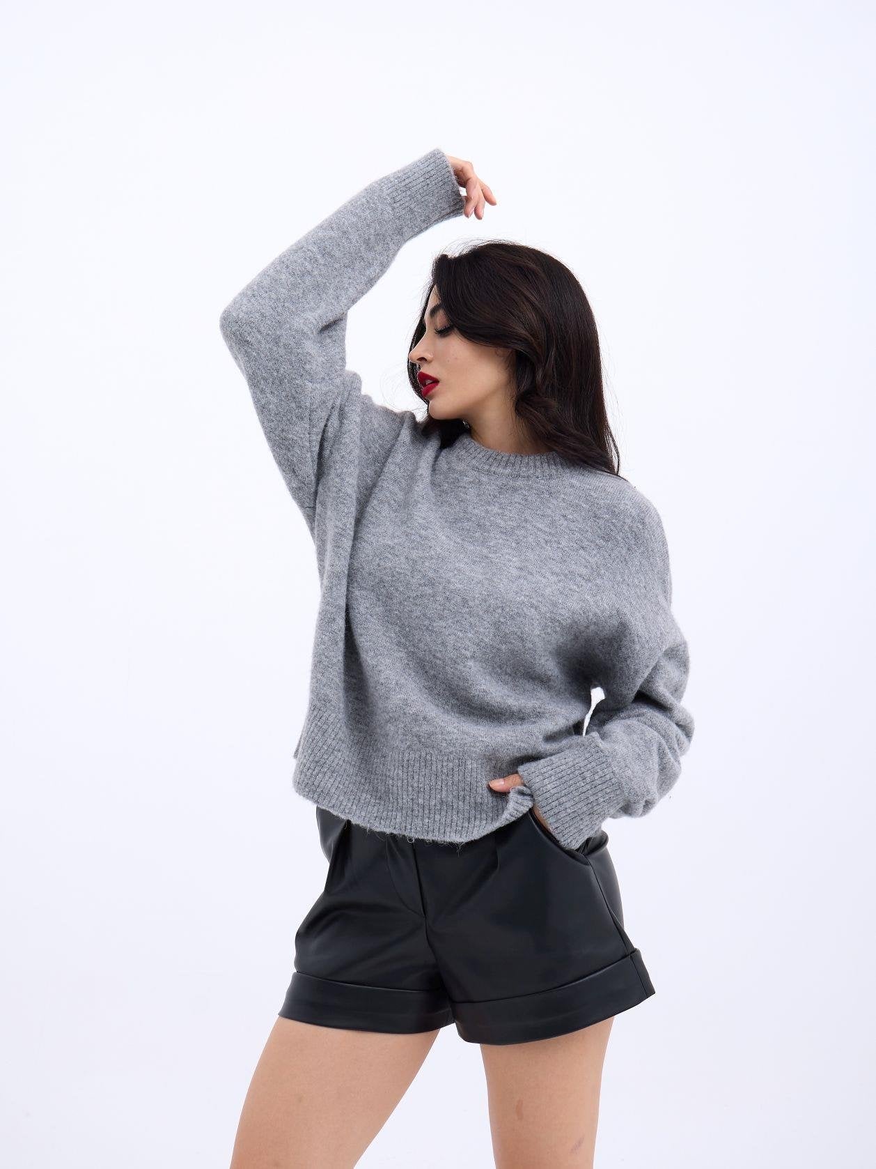 43031 TRİKO YARIM BALIKÇI KISA KAZAK-GRİ