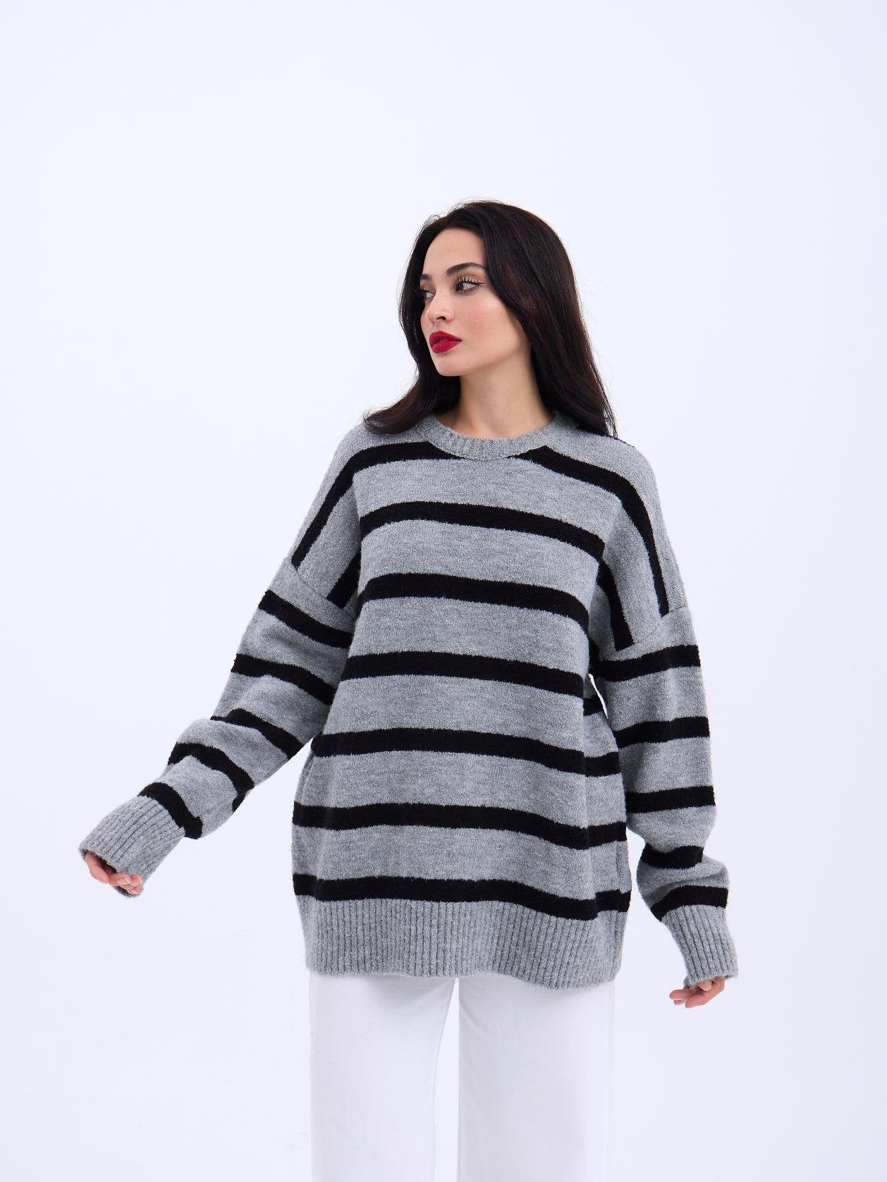 43111 TRİKO ÇİZGİLİ SALAŞ KAZAK-GRİ-SİYAH