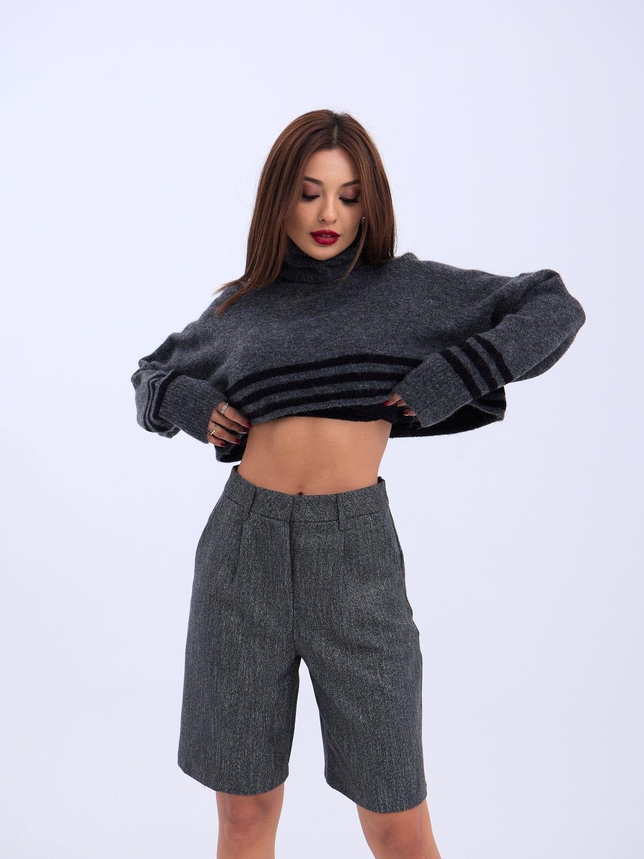 43241 TRİKO ÇİZGİLİ BALIKÇI CROP-SİYAH-EKRU