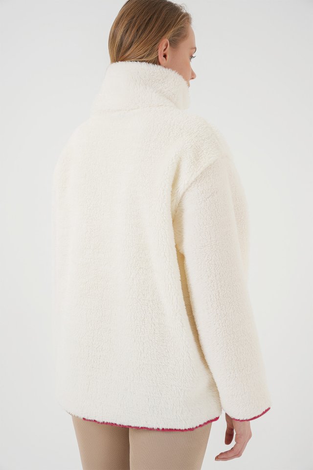 5211 Fermuarlı Peluş Mont - Kırmızı