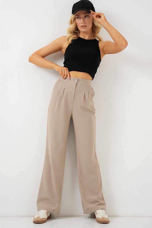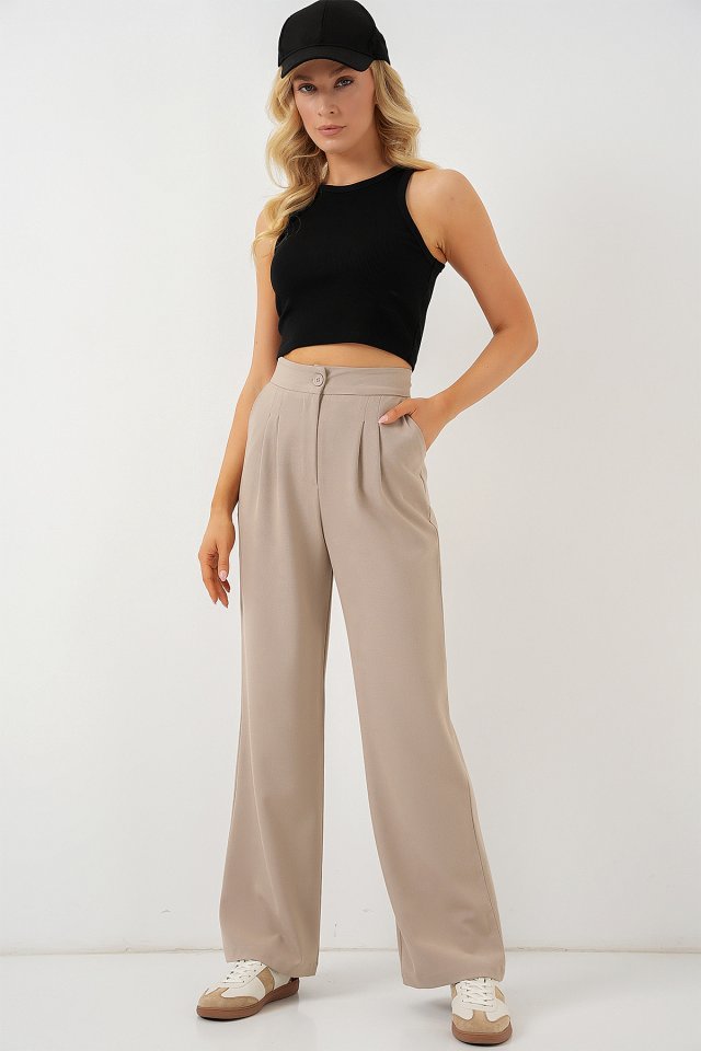 6638 Yüksek Bel Palazzo Pantolon - A.Bej