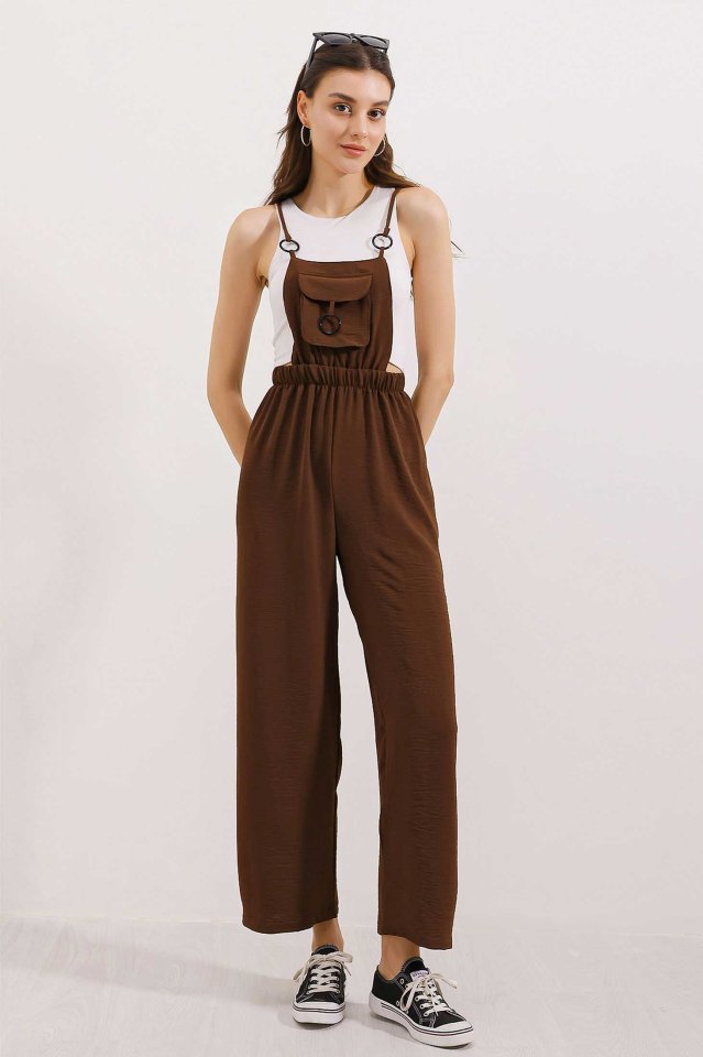 7023 Askılı Bahçıvan Tulum - Kahverengi