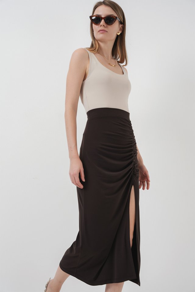8033 Sandy Yırtmaçlı Etek - Kahverengi
