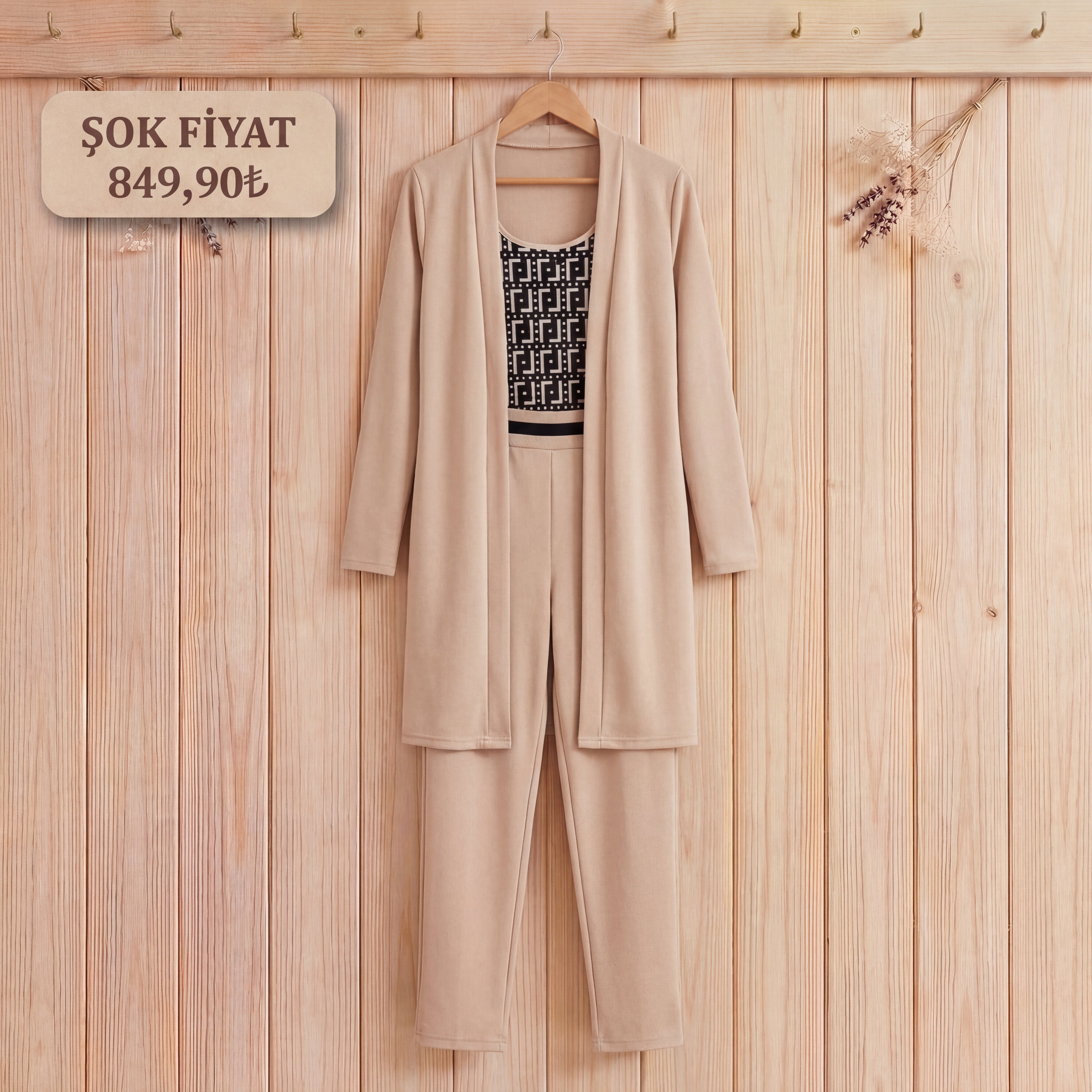 Kadın uzun kollu krep üçlü takım Beden: S-M/L-XL/2XL-3XL