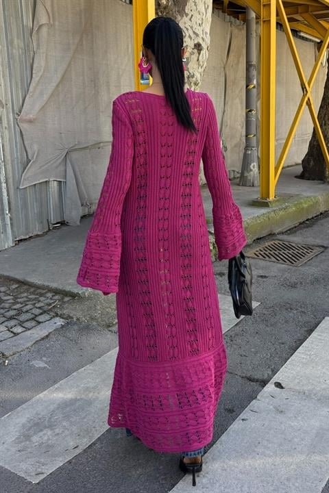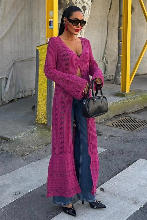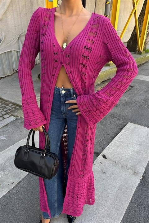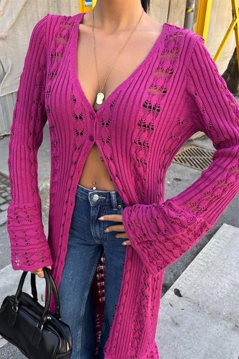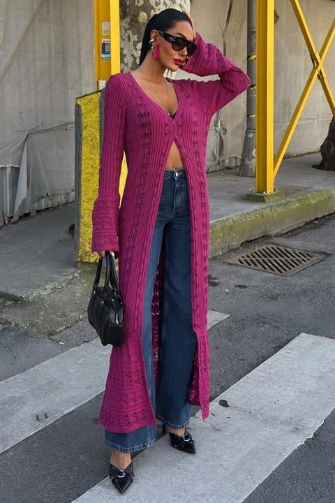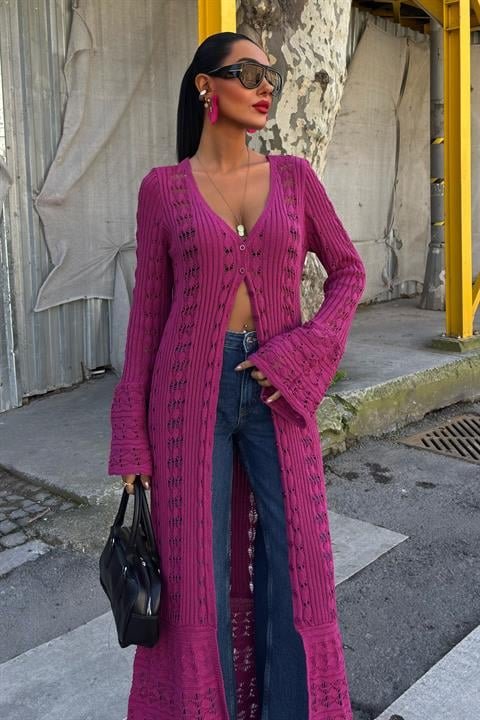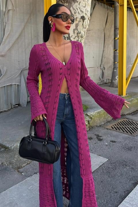Ajur Uzun Düğmeli Triko Hırka 5181