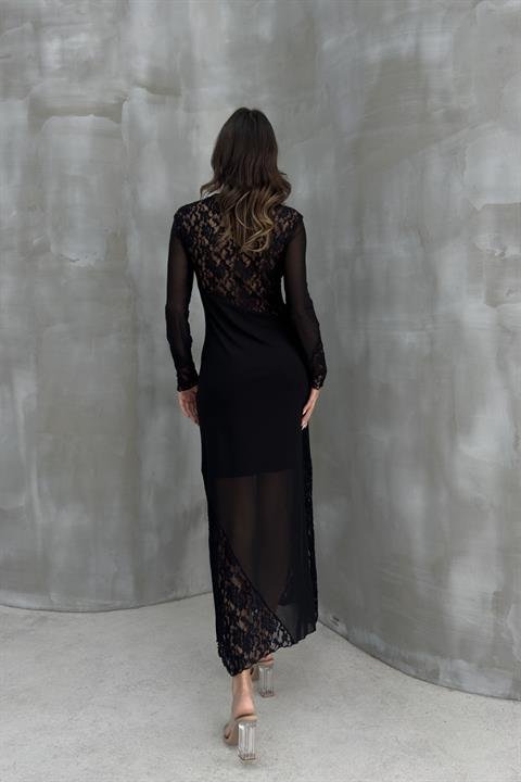 Almond Dantel Detaylı Tül Elbise 2659-8