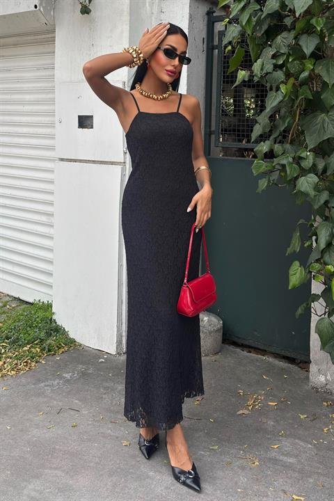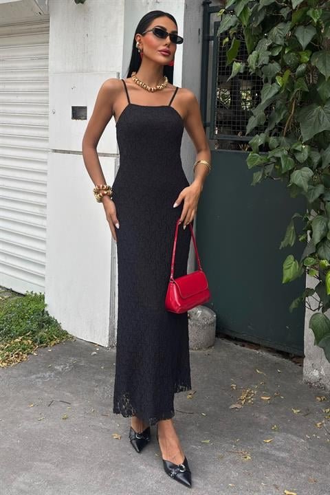 Askıları Ayarlanabilir Örme Dantel Elbise 2879