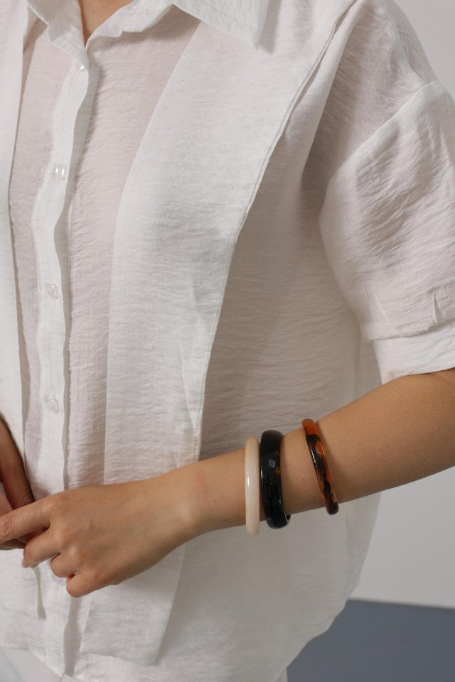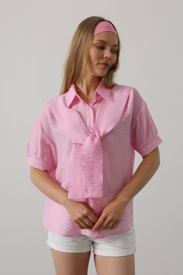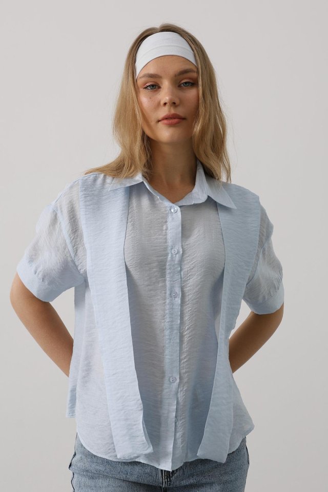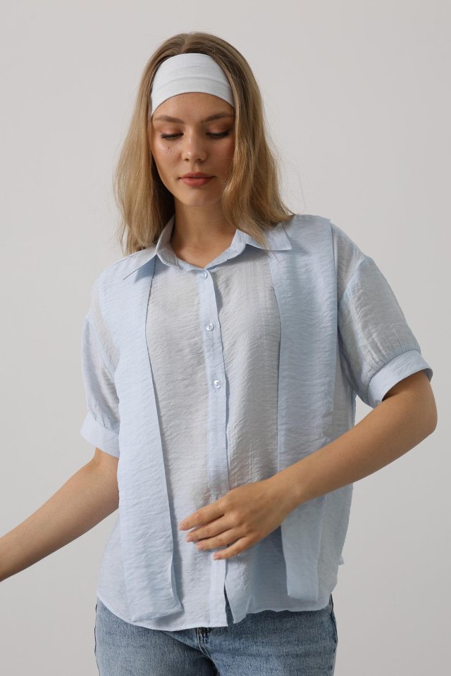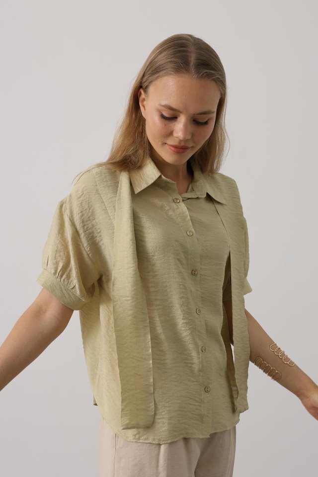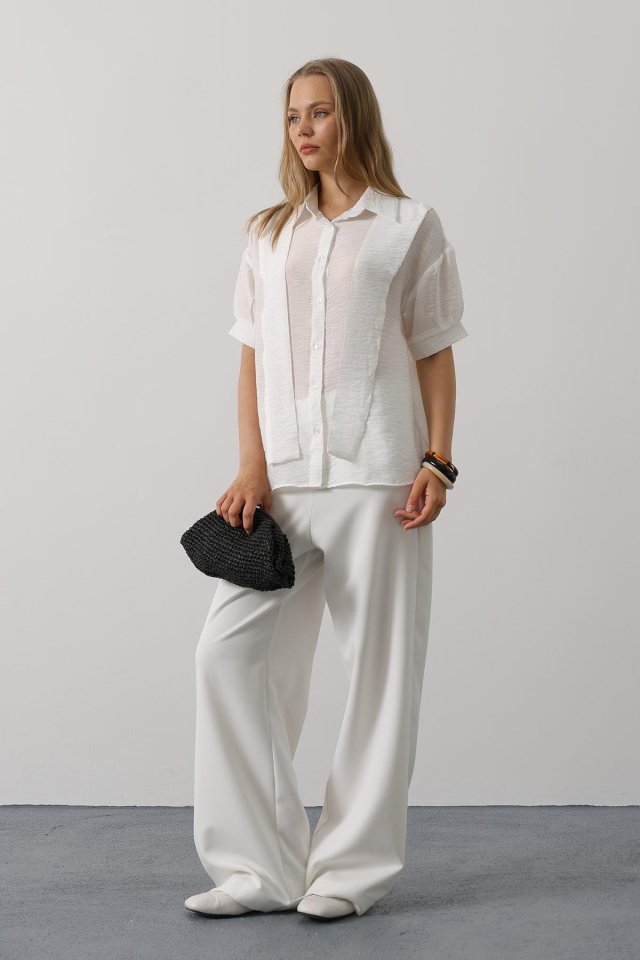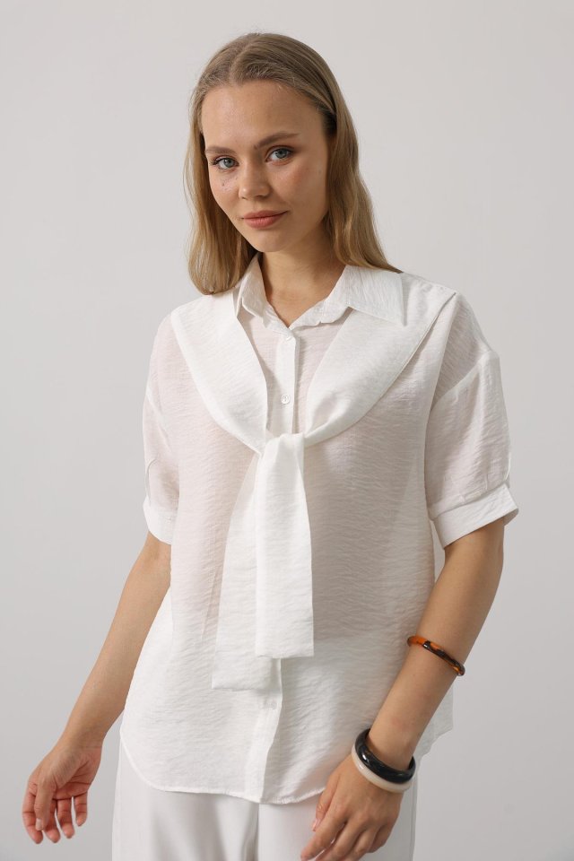 Atkı Detaylı Yarım Kol Gömlek - Beyaz