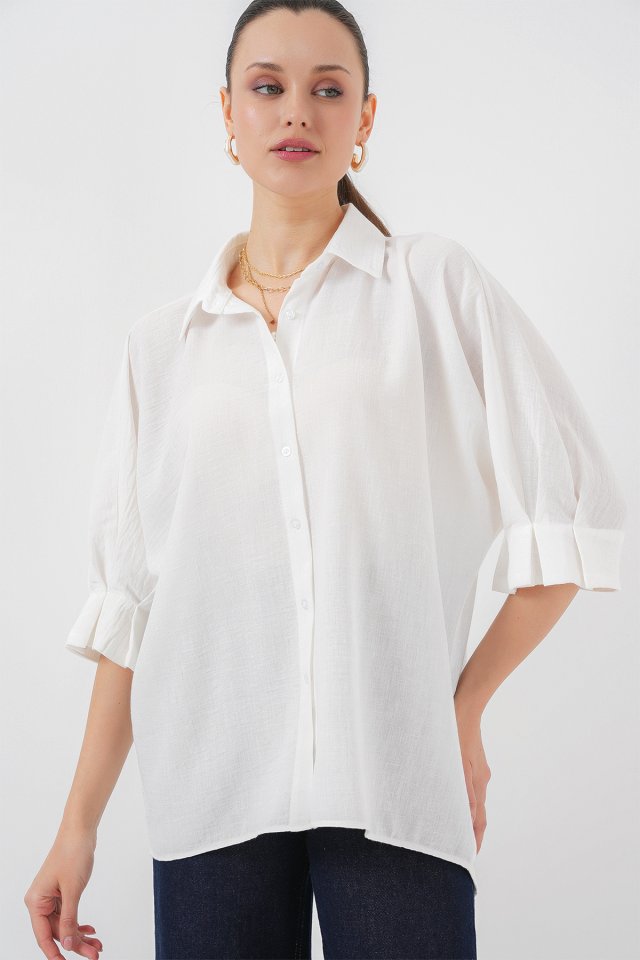 Bağlama Detaylı Ayrobin Gömlek 20290 - Beyaz