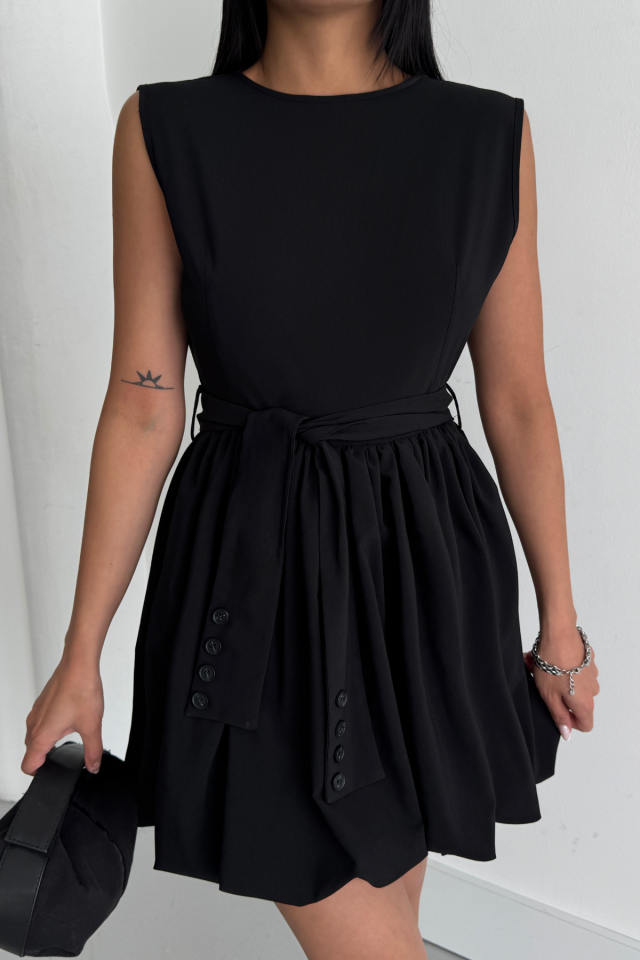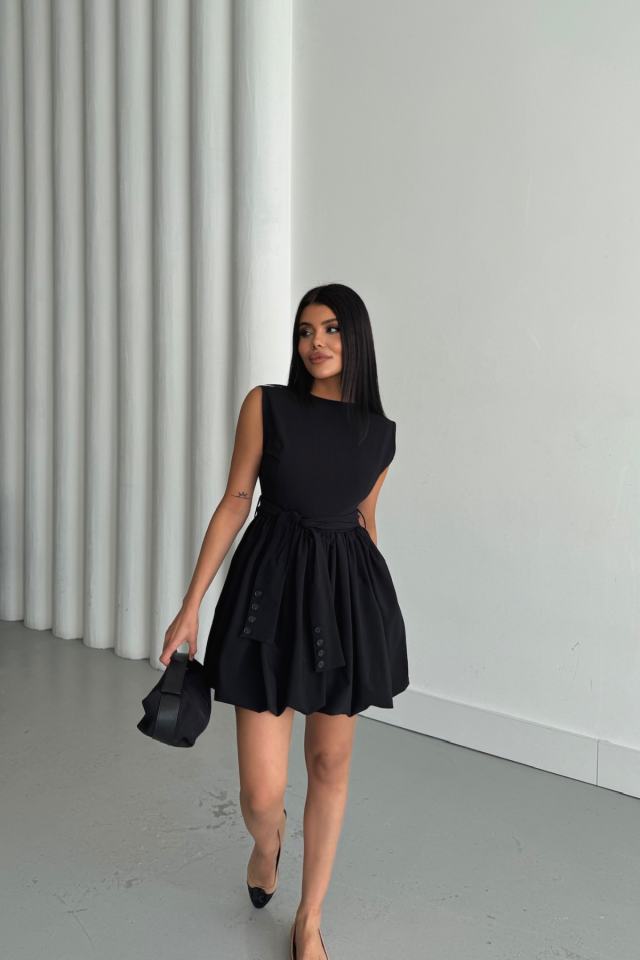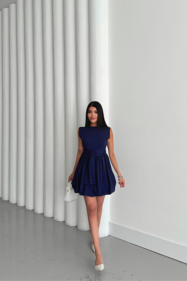 BALON ETEKLİ TASARIM KISA ELBİSE - Bej