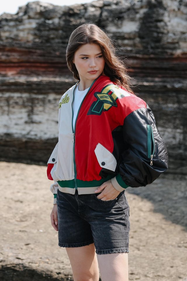 Baskılı Ceket - Siyah-Kırmızı-Bej
