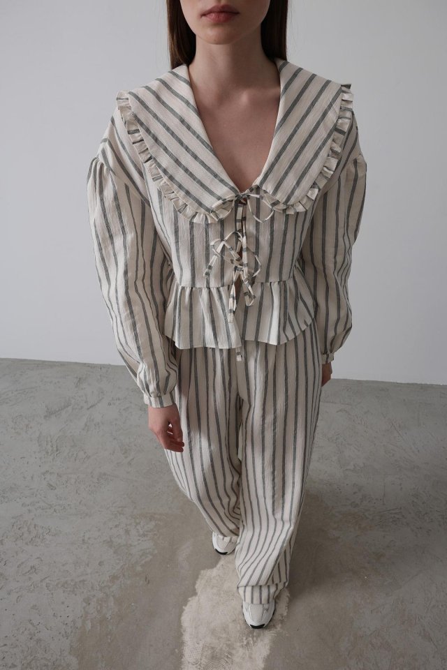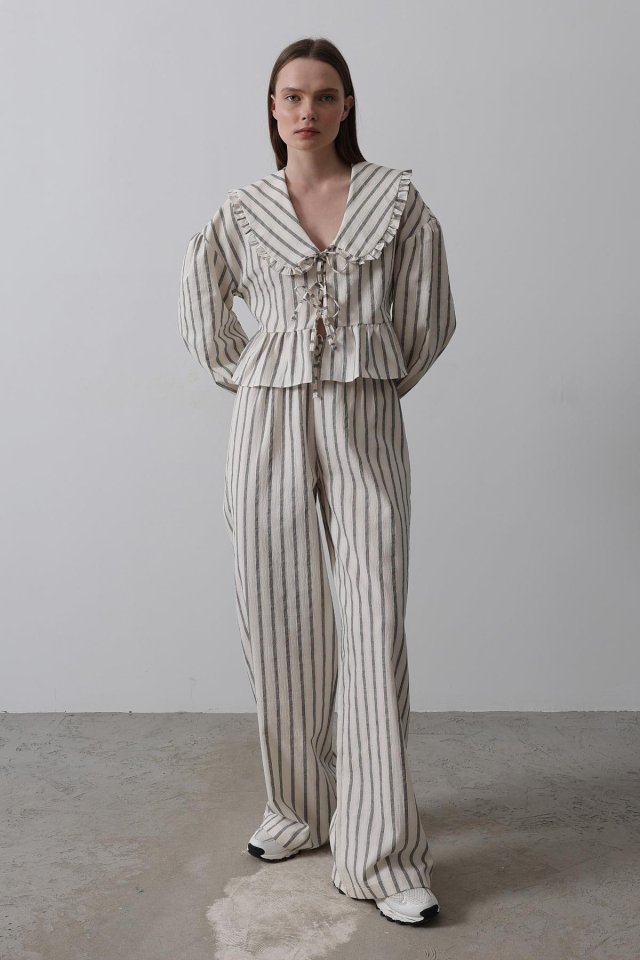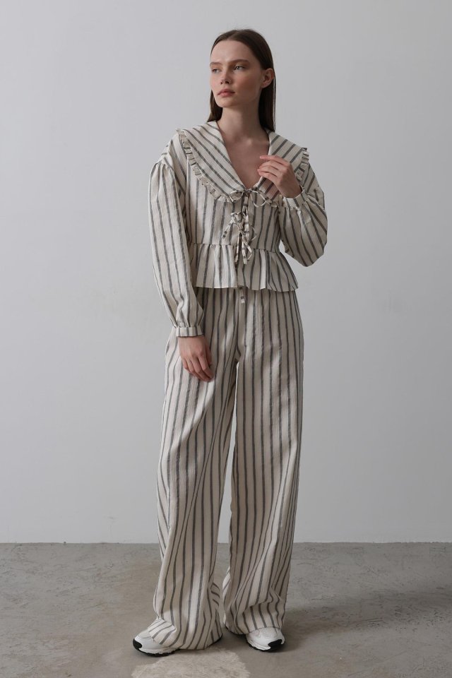 Bebe Yakalı Önü Bağlamalı Takım - Natür