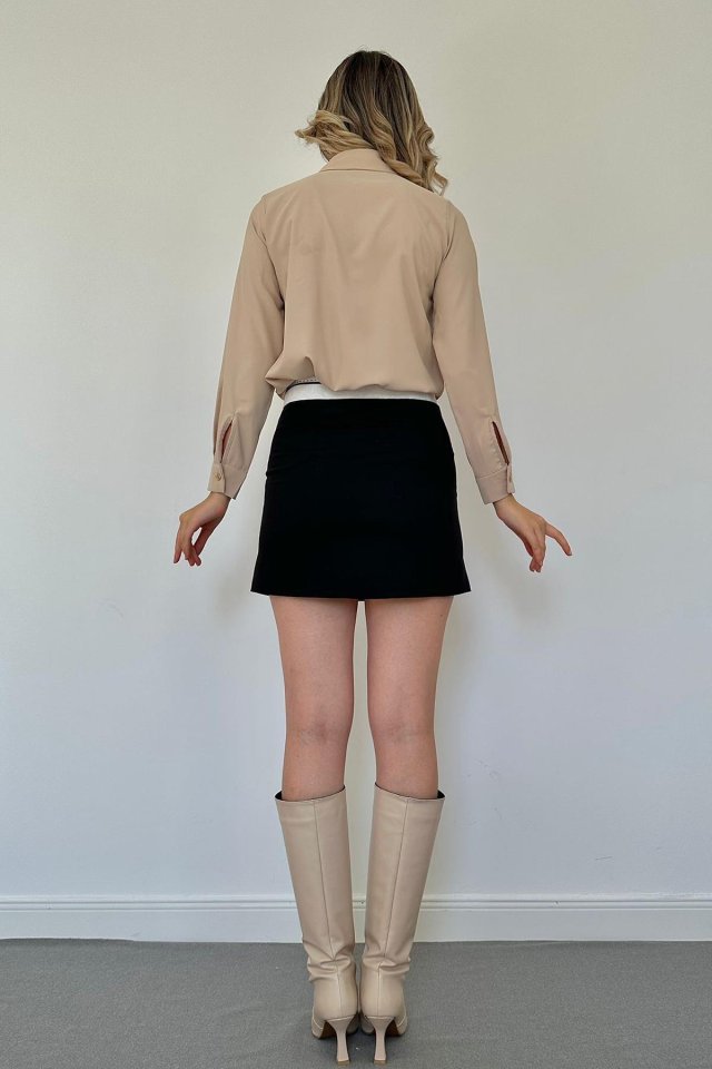 Bej Jesica Volanlı Taş Düğme Detaylı Gömlek
