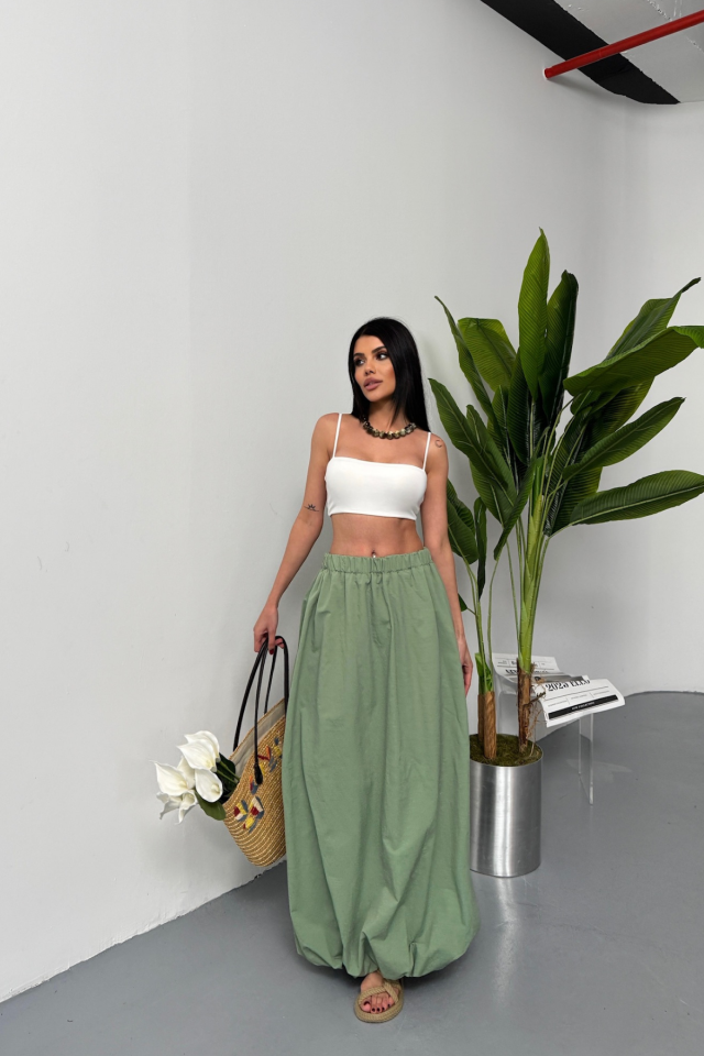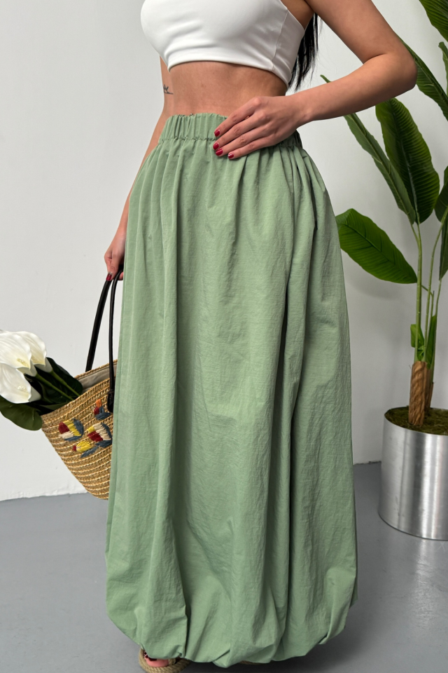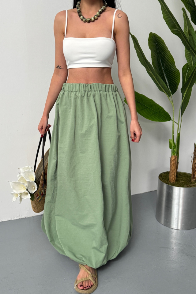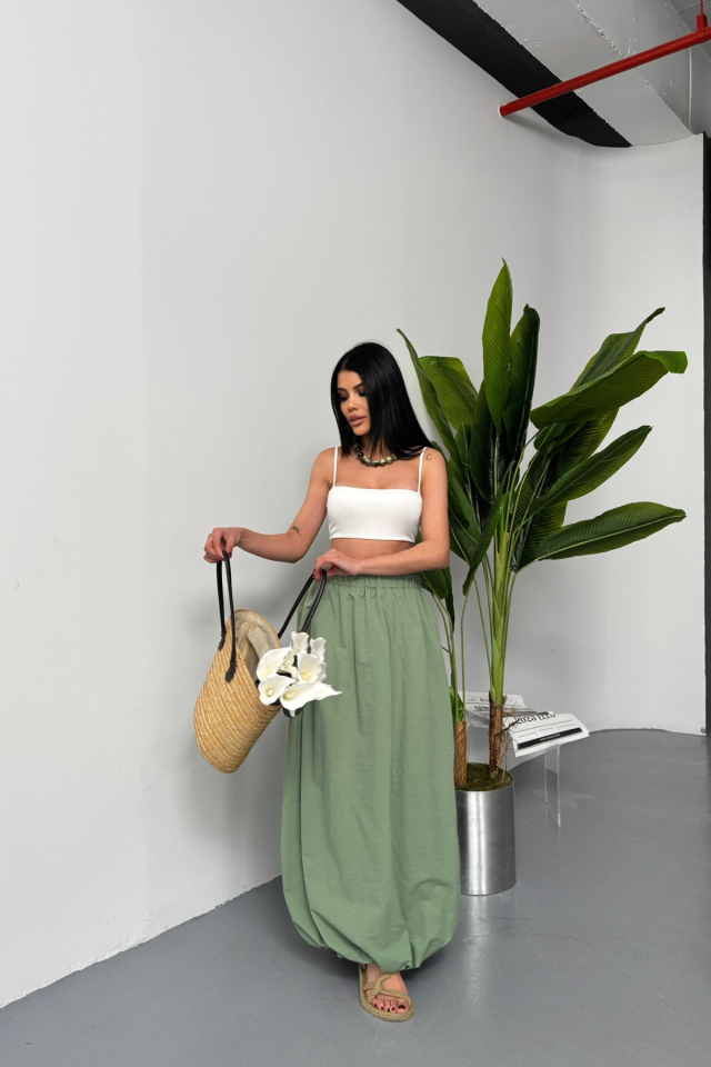 BEL LASTİKLİ BALON ETEK ŞANEL BOY SOFT KUMAŞ - Haki