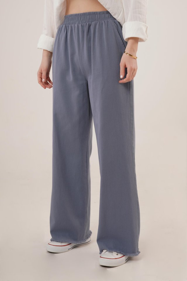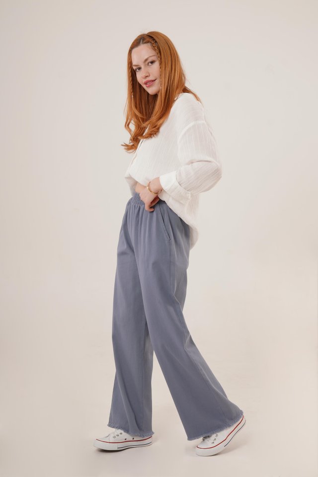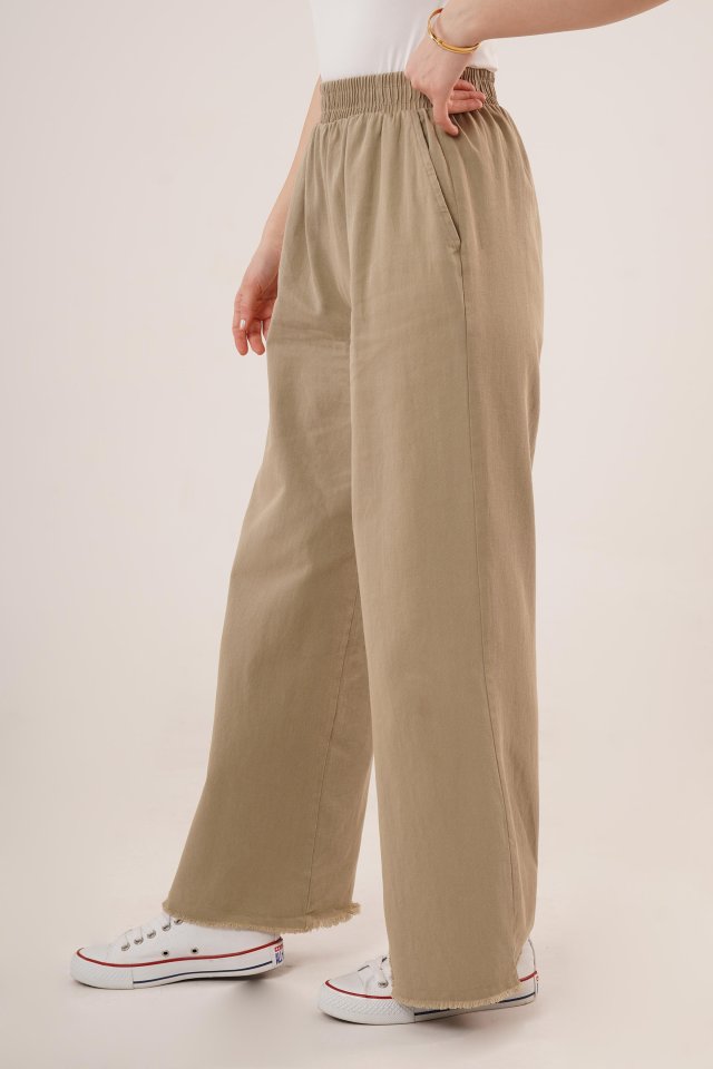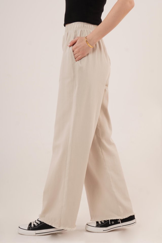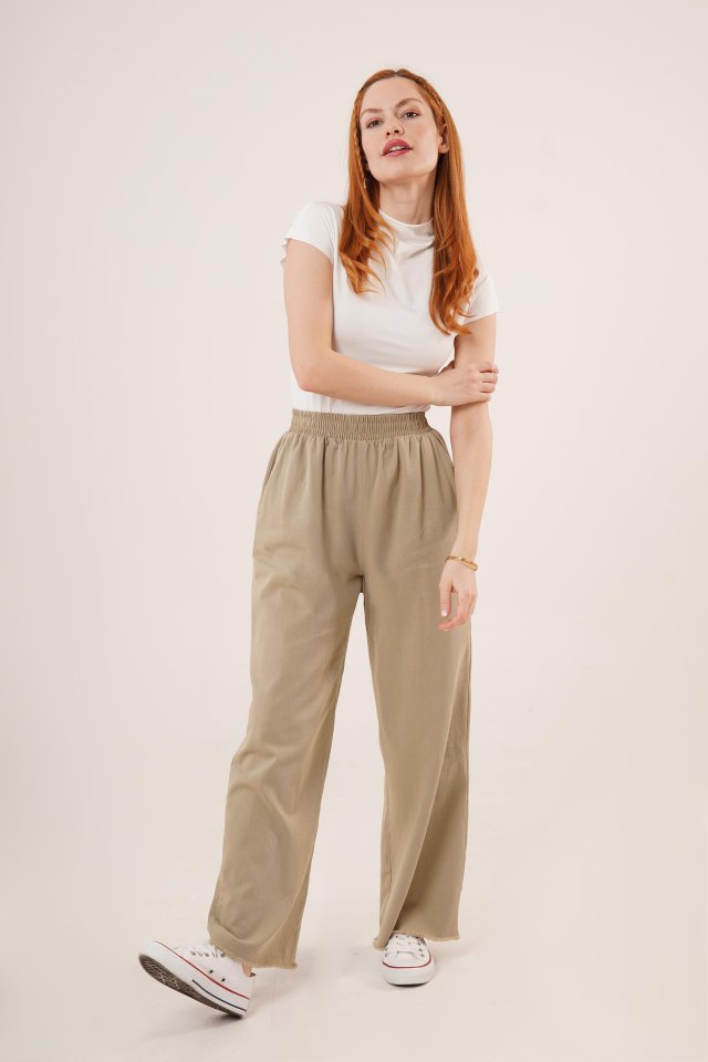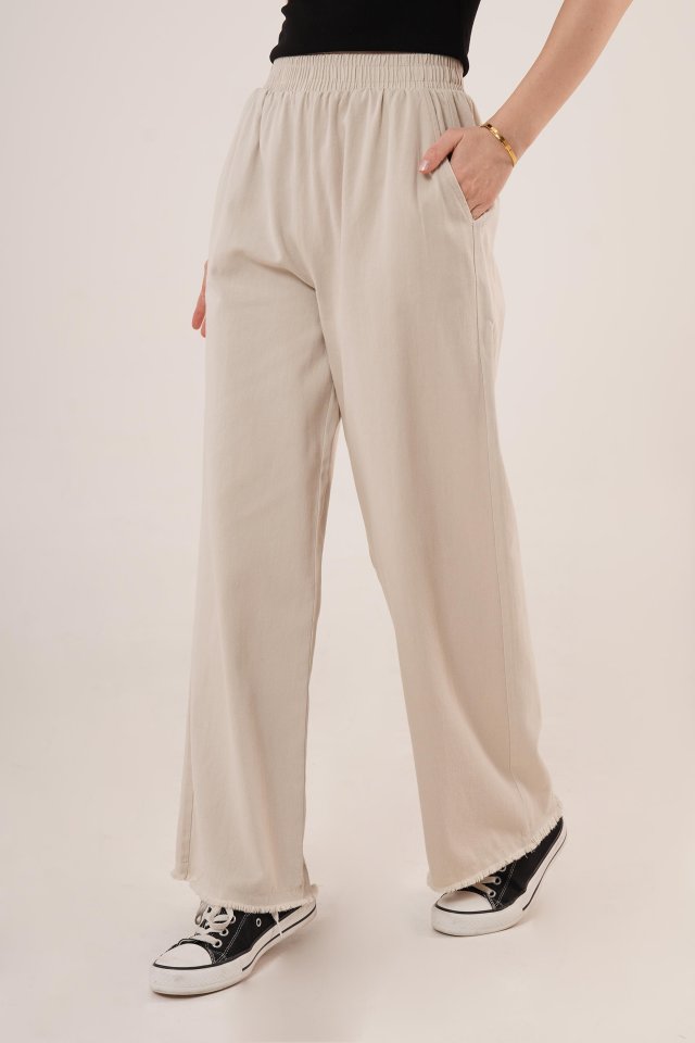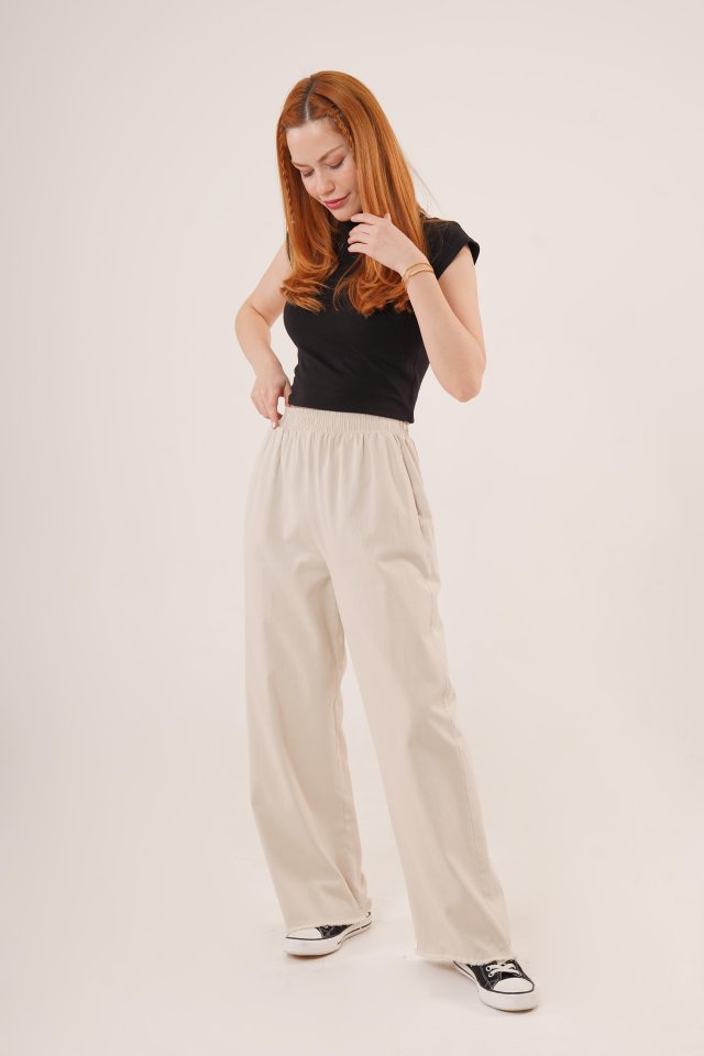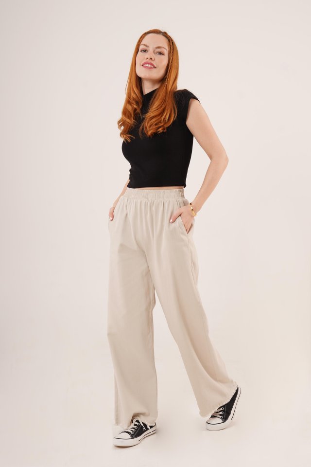 Bel Lastikli Paça Detaylı Cepli Krem Pantolon