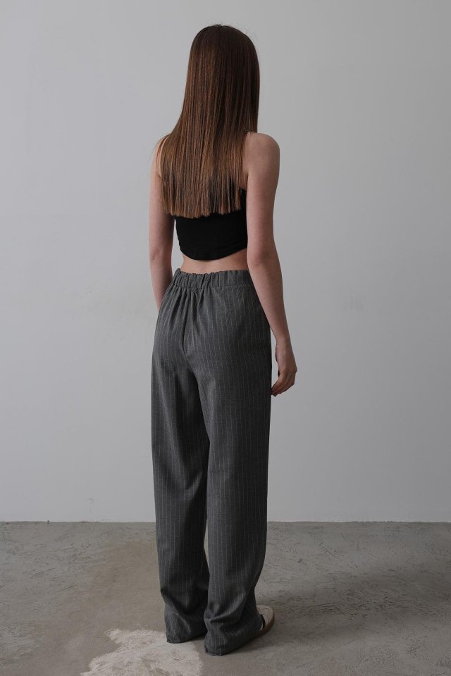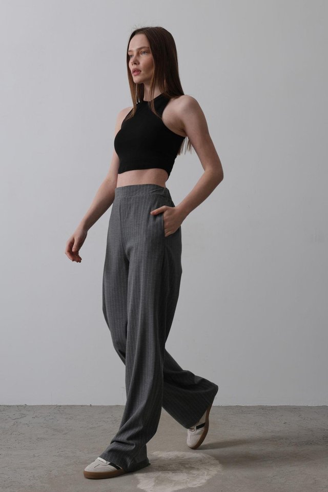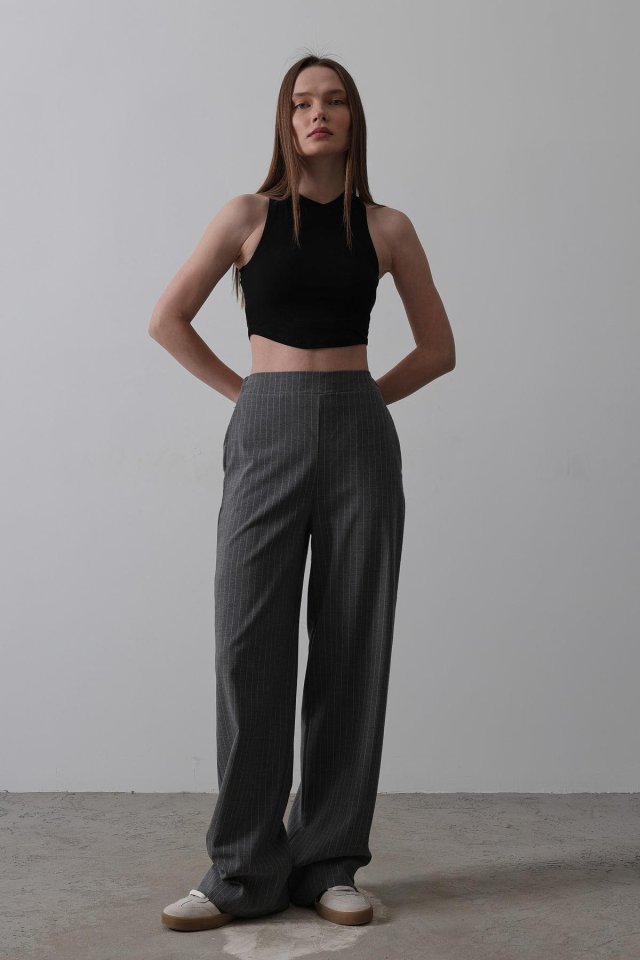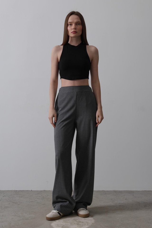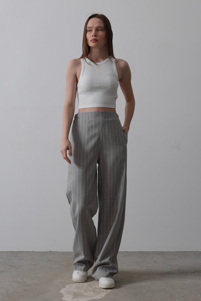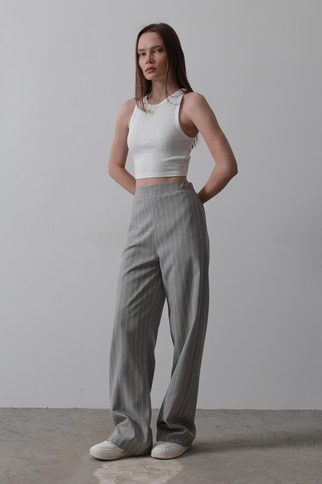 Beli Yarım Lastikli Palazzo Pantolon - Gri-Beyaz