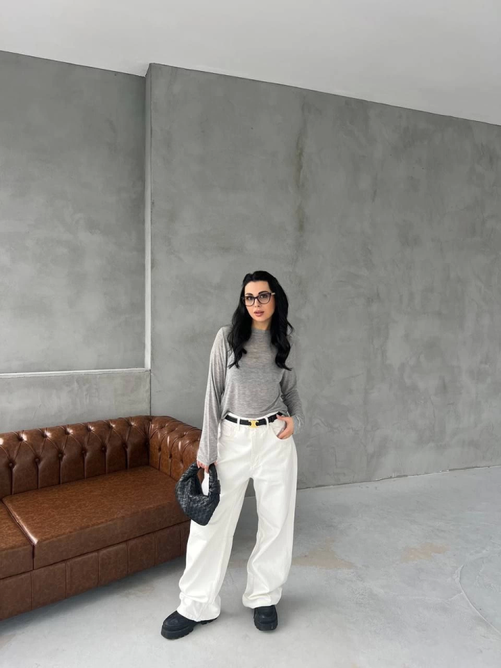 Bisiklet Yaka Uzun Kollu Crop - Gri
