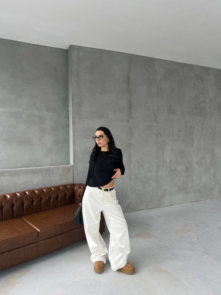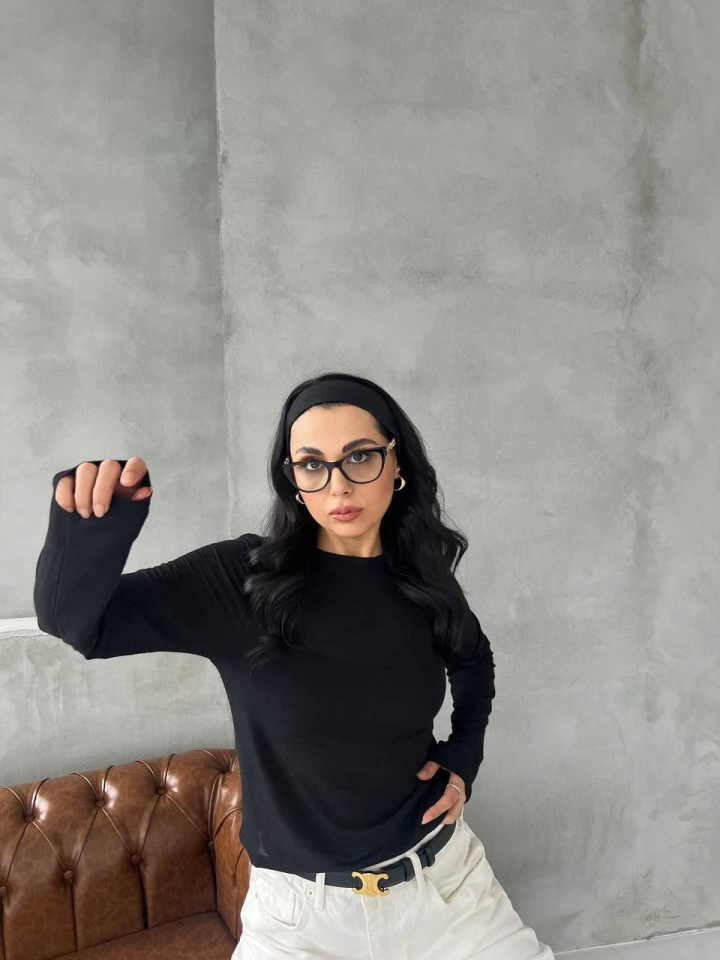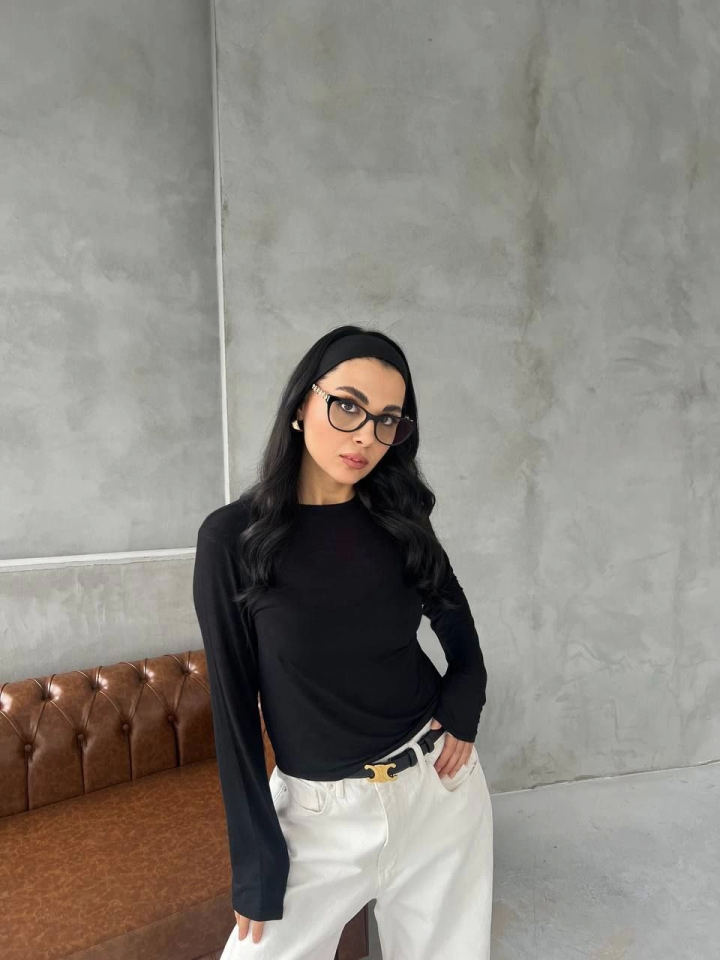 Bisiklet Yaka Uzun Kollu Crop - Siyah