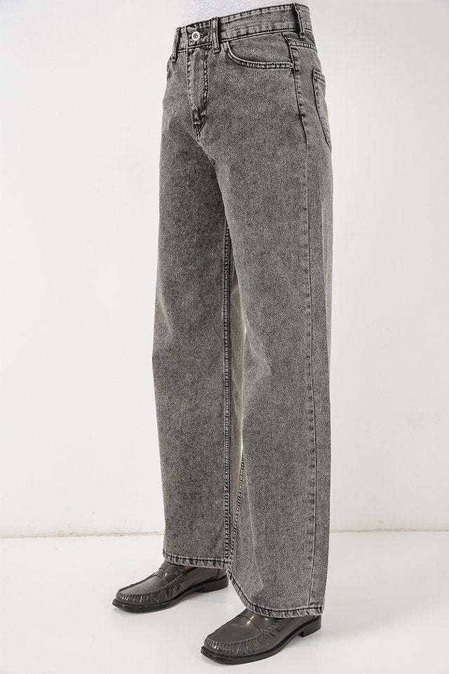 Bol Paça Yüksek Bel Palazzo Kot Pantolon 6656 - Gri