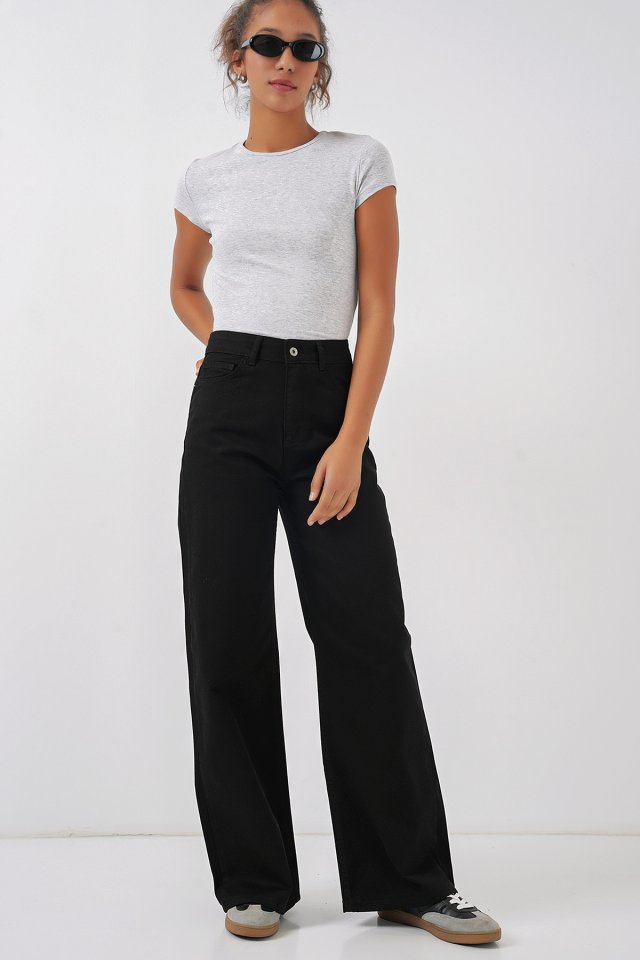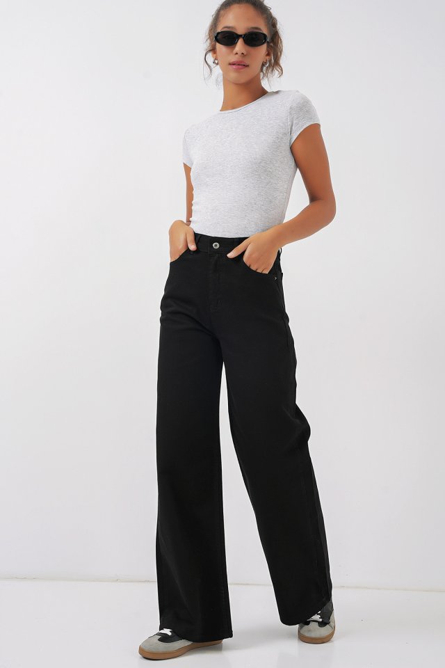 Bol Paça Yüksek Bel Palazzo Kot Pantolon 6656 - Mavi