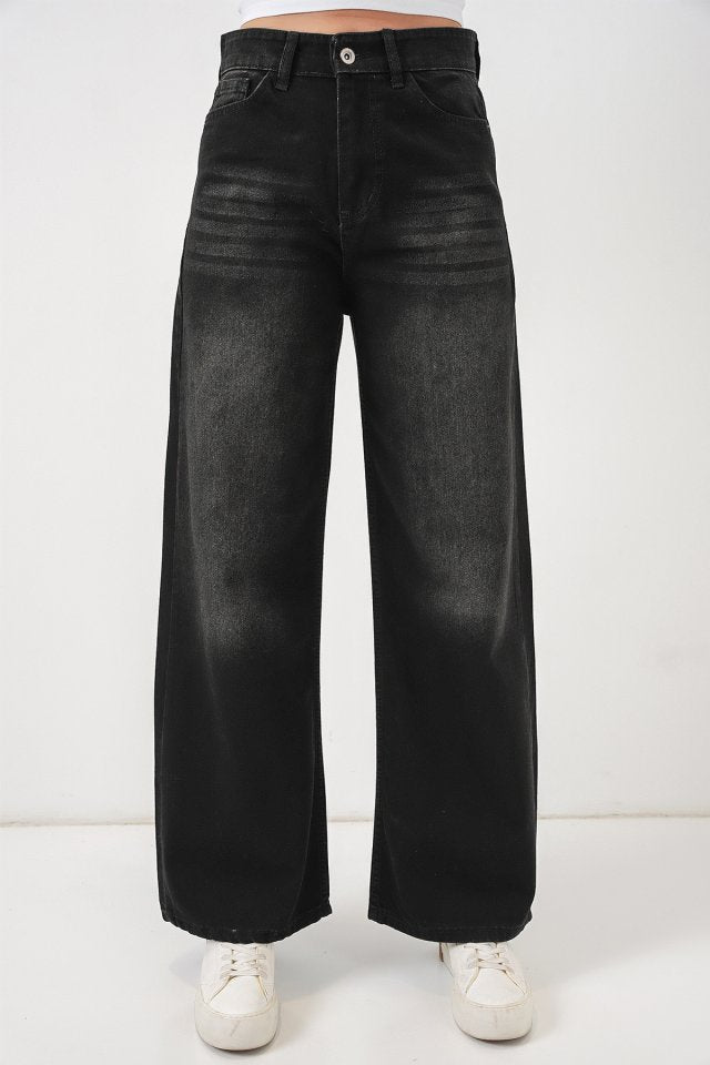 Bol Paça Yüksek Bel Palazzo Kot Pantolon 6656 - Siyah
