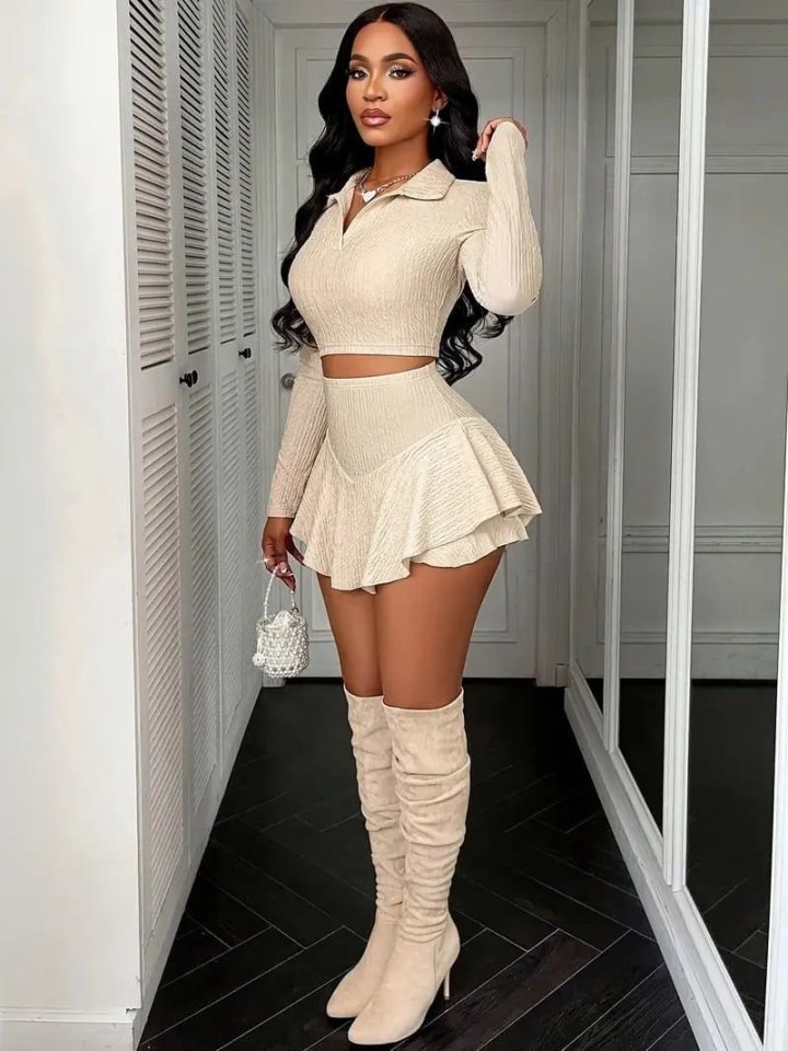 Bürümcük Kumaş Uzun Kol Vatkalı Şort Etekli Takım