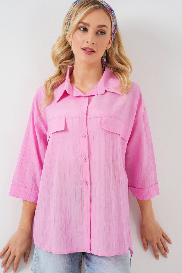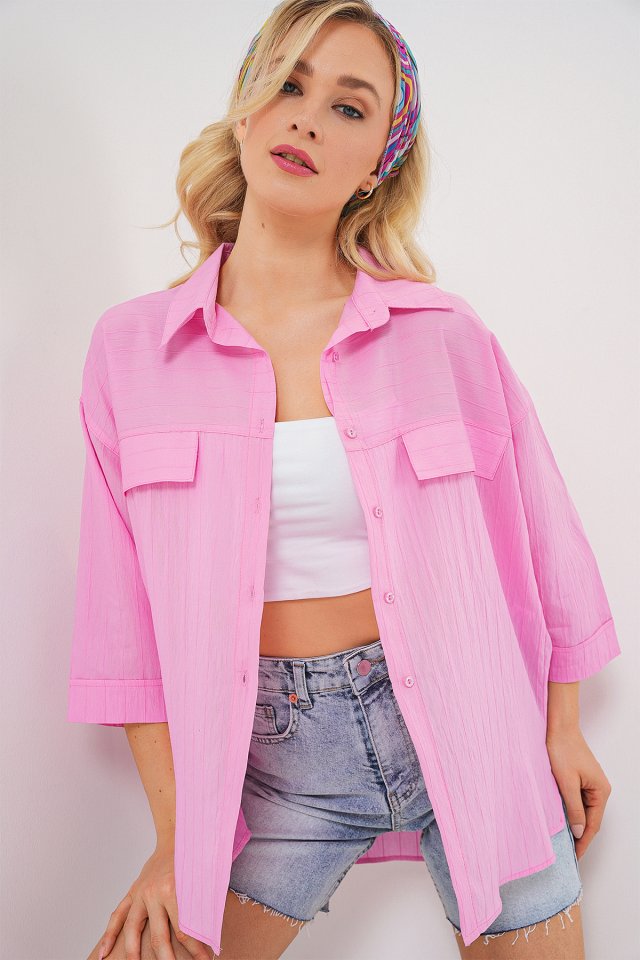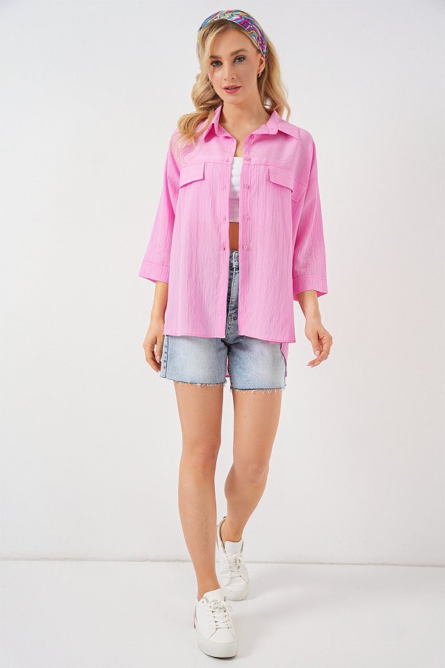 Cep Detaylı Kısa Kol Gömlek 20317 - Pembe