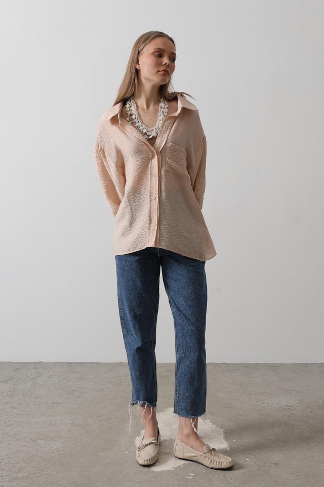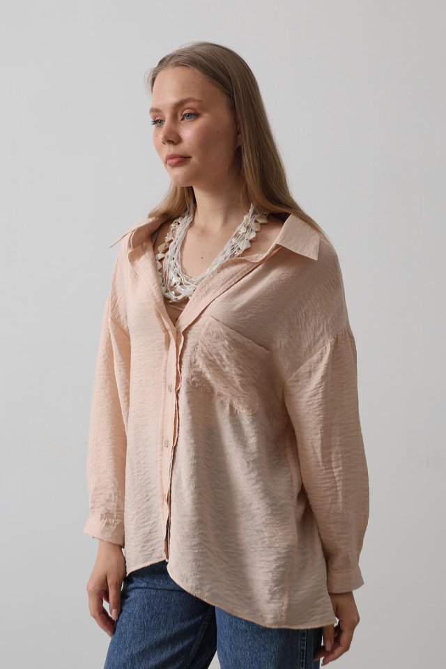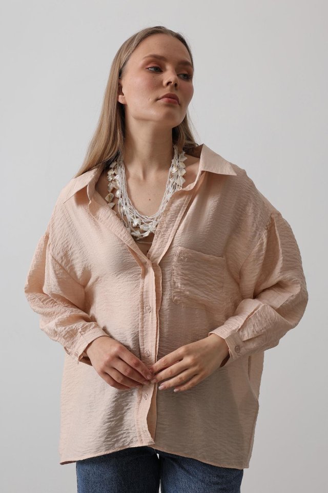 Cepli Oversize Gömlek - Taş