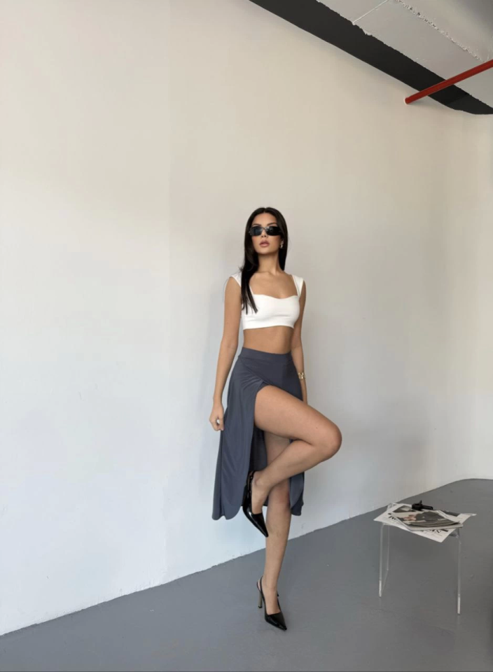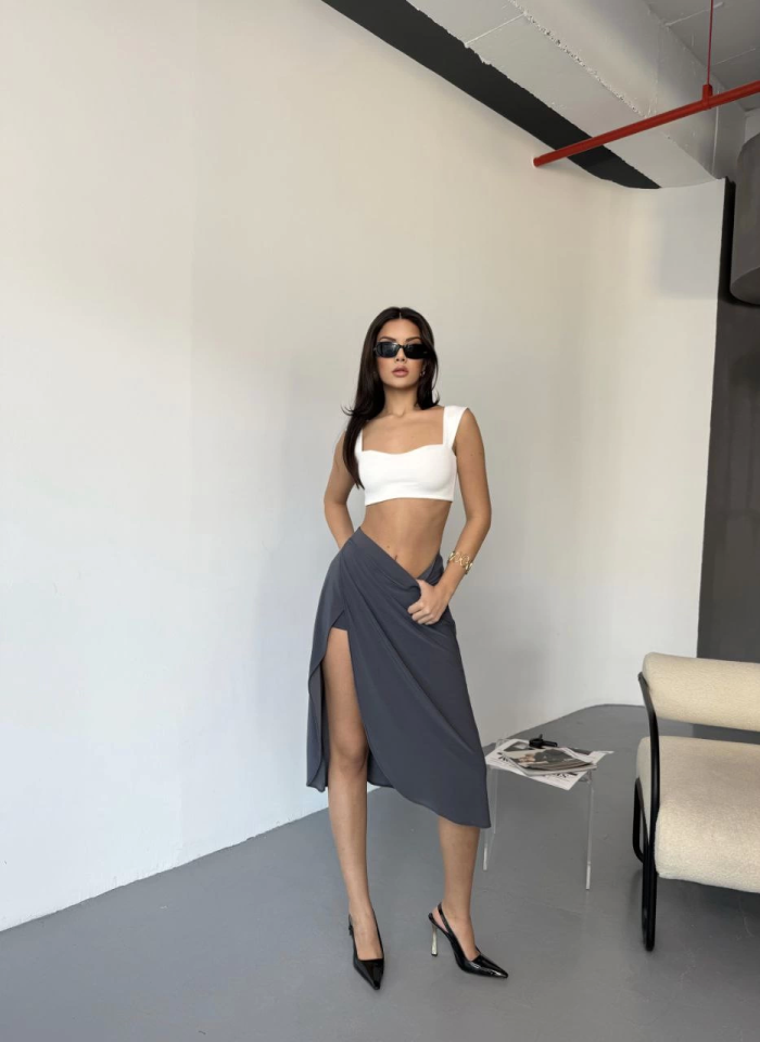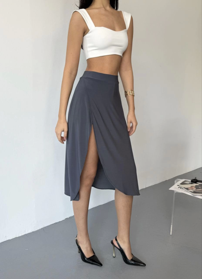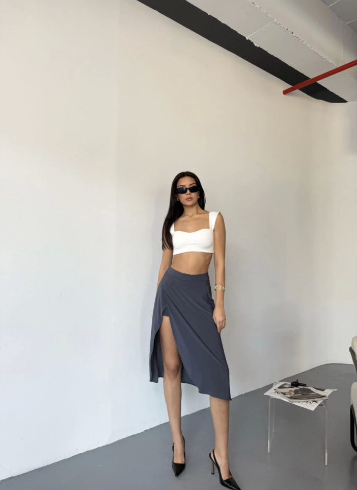 Çepli Şortlu Yırtmaçlı Etek - Gri