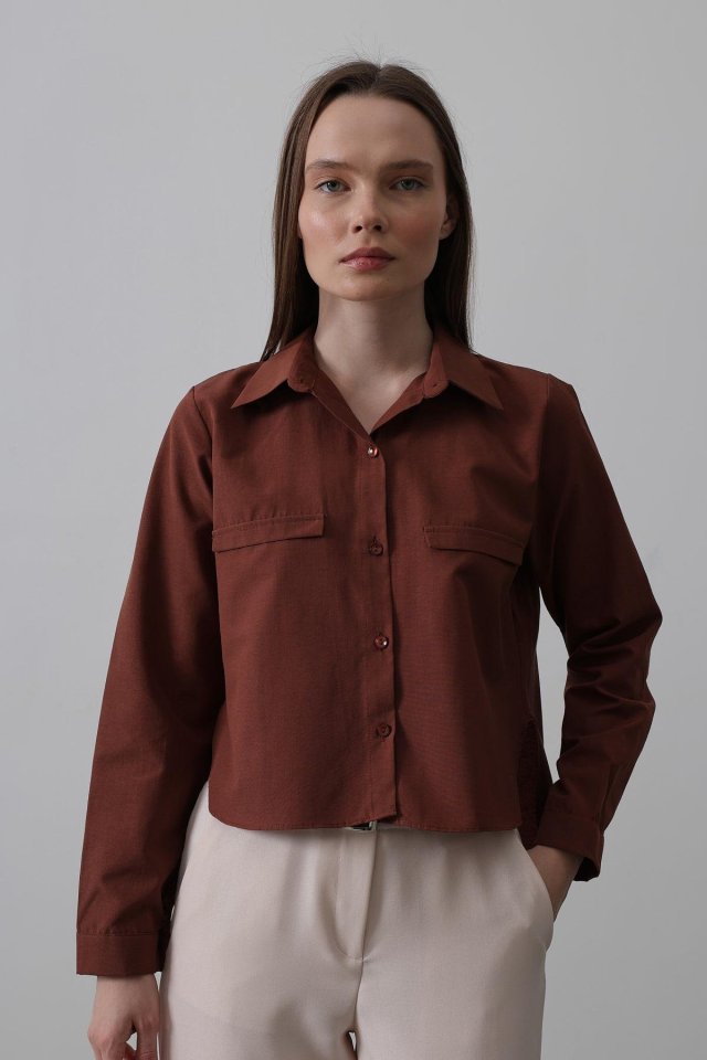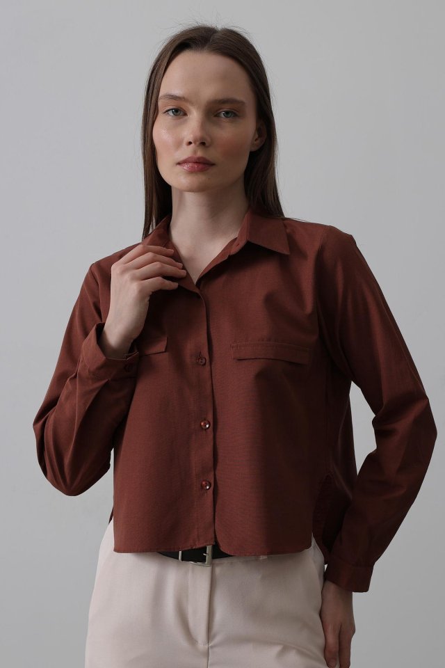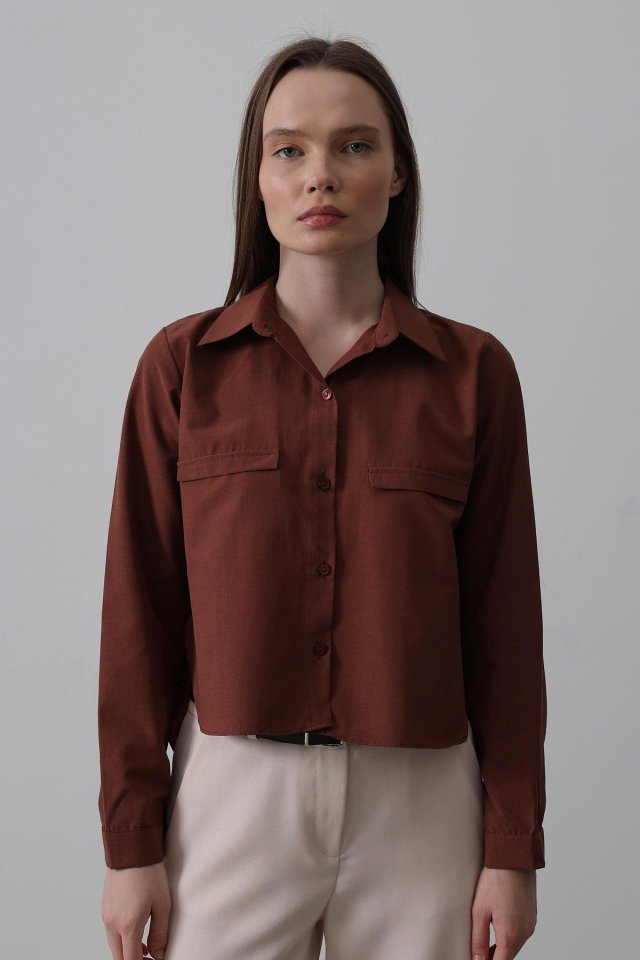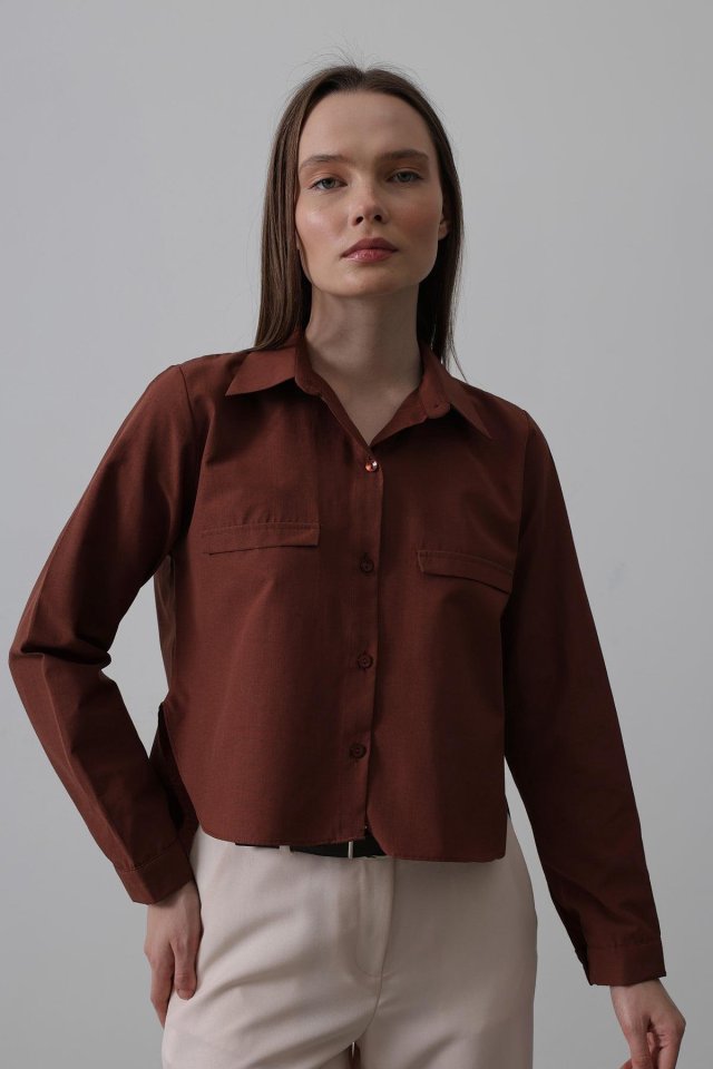 Cepli Uzun Kol Gömlek - Koyu Kahve