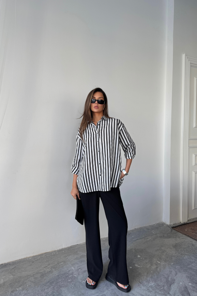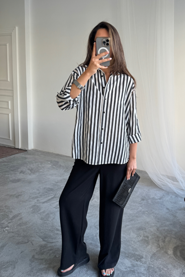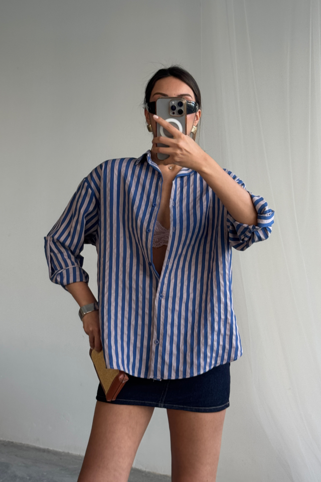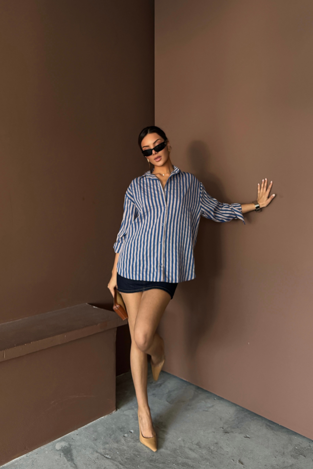 ÇİZGİLİ GÖMLEK  KETEN - Lacivert