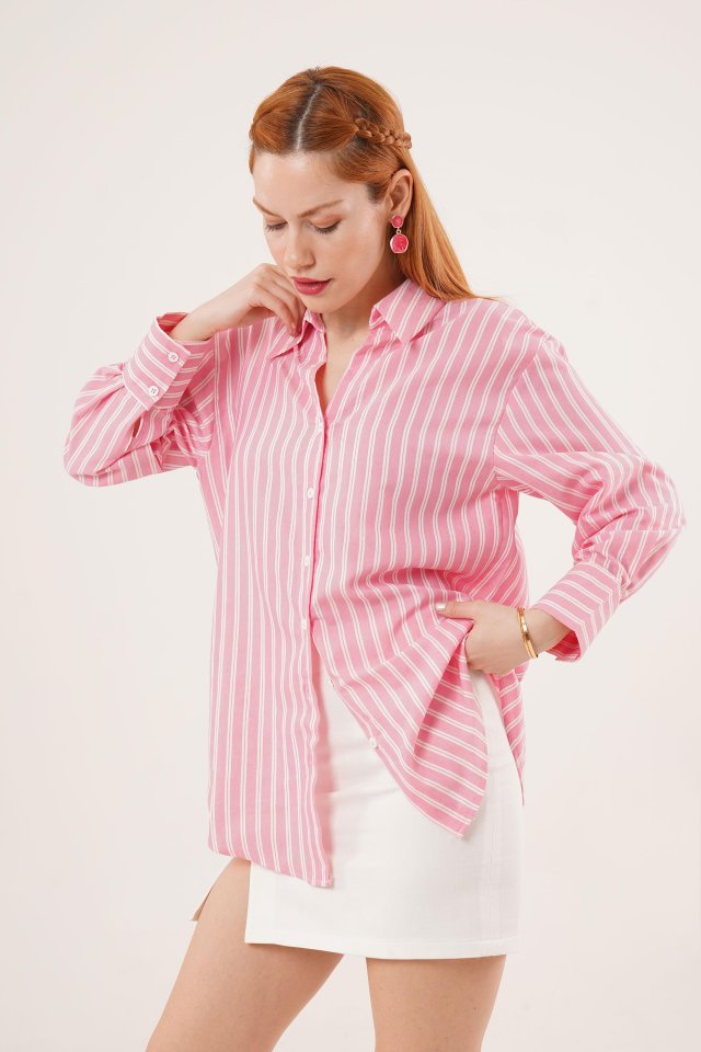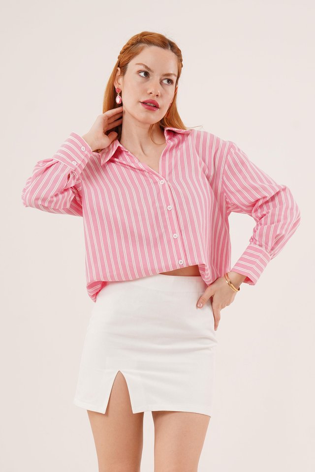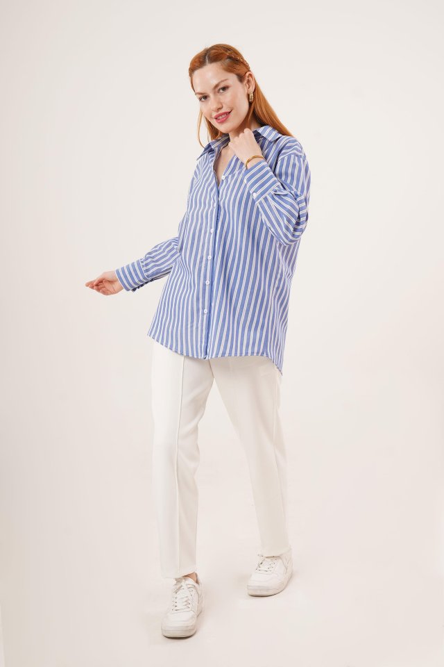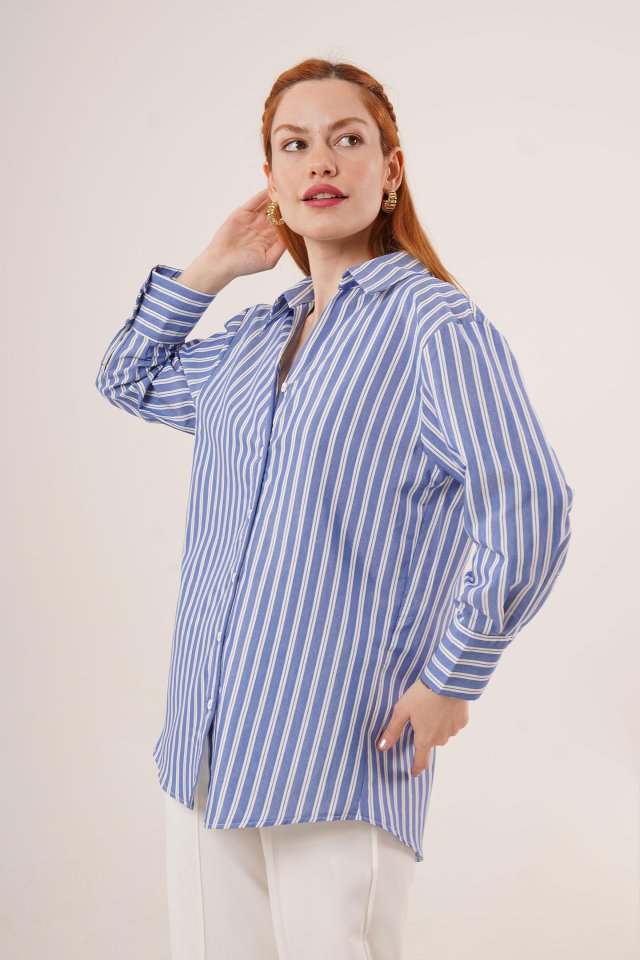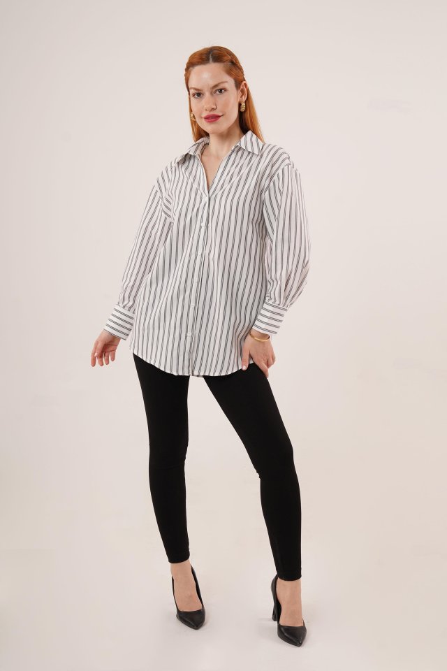 Çift Çizgi Geçişli Düğmeli Gri Gömlek
