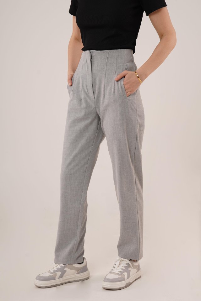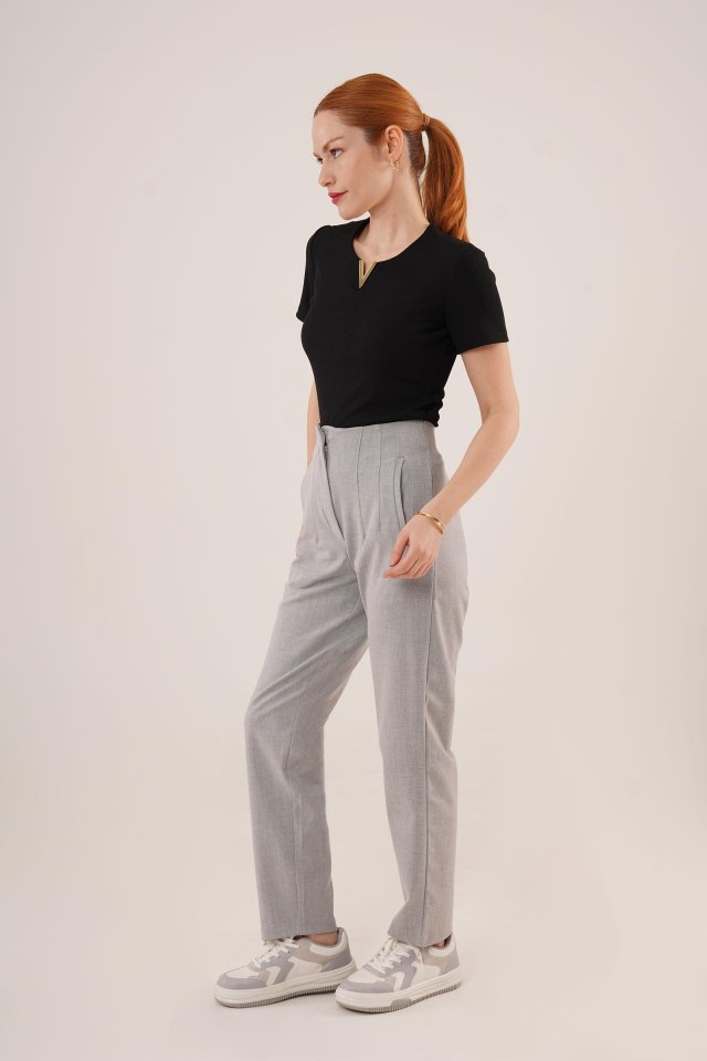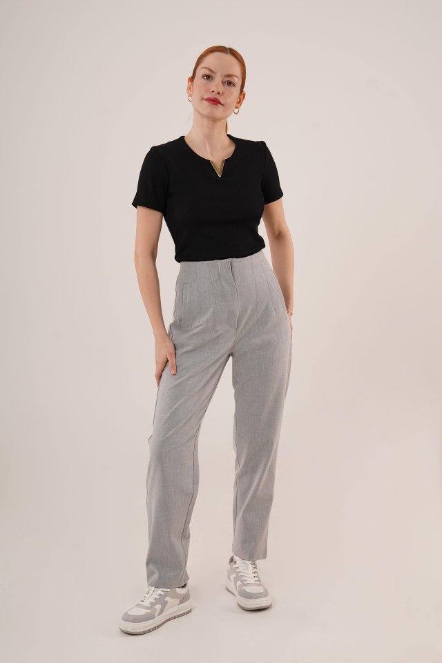 Çift Pens Detaylı Gri Pantolon