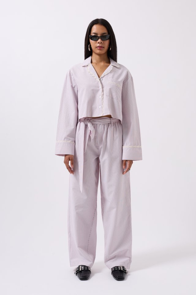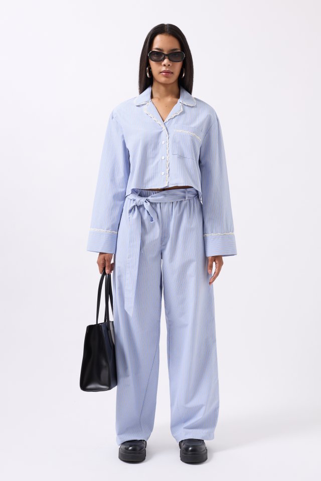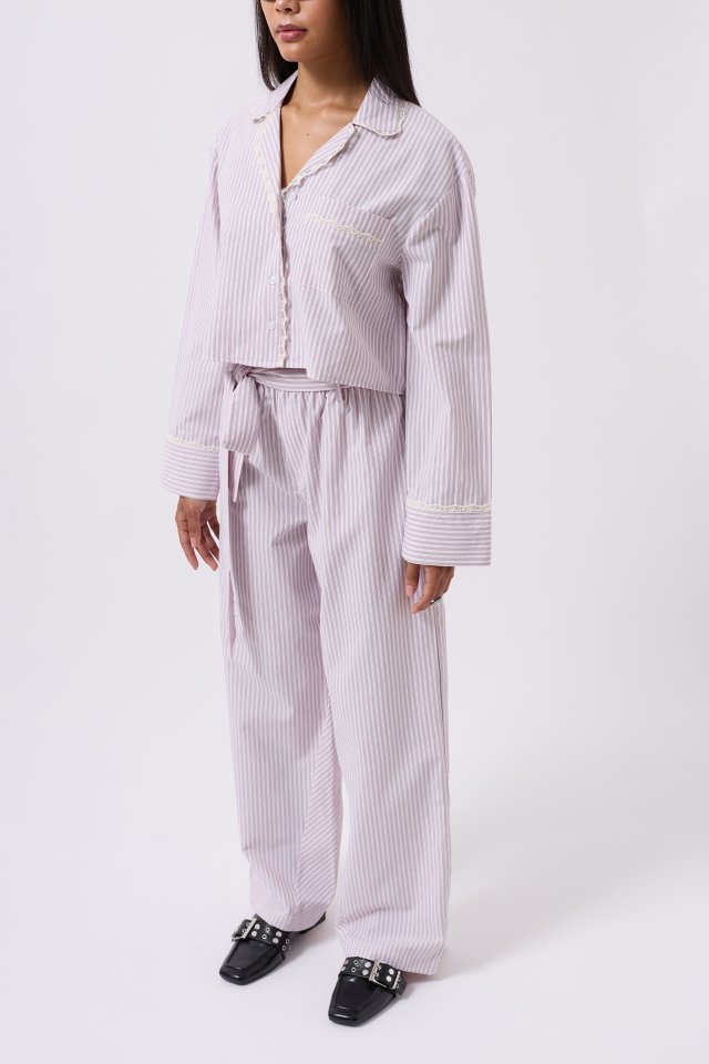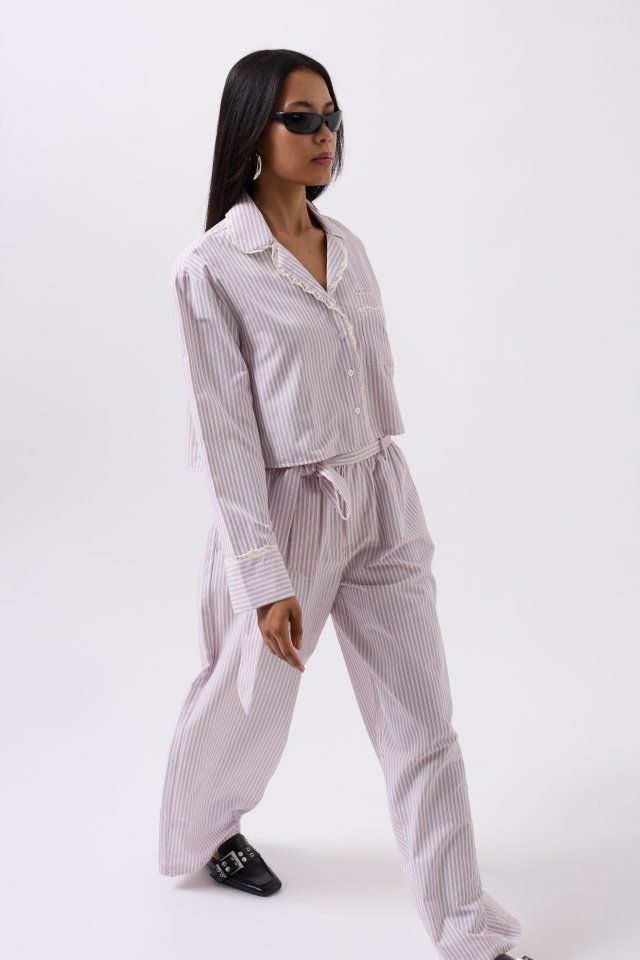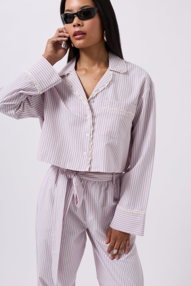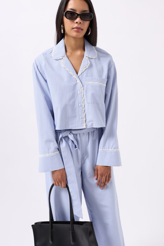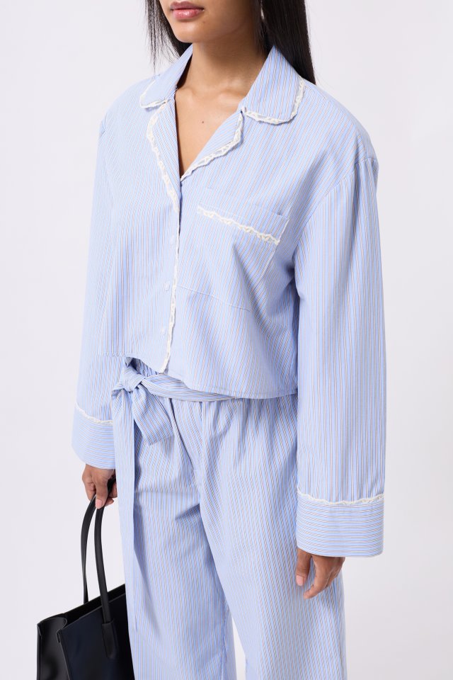 Çizgili Cep Detay Crop Gömlek