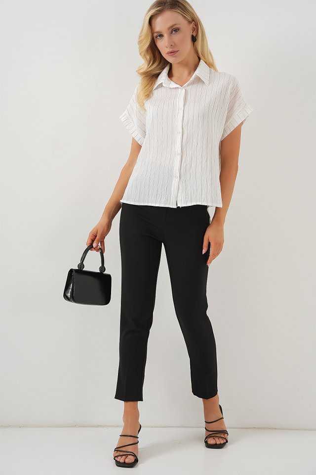 Çizgili Kısa Kol Gömlek 20327 - Pembe