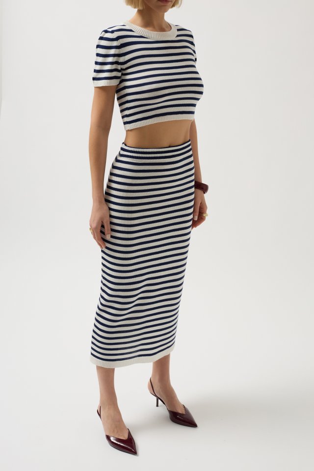 Çizgili Midi Dokulu Etek