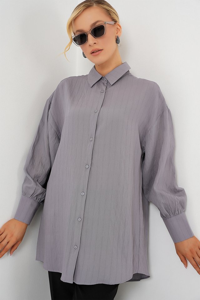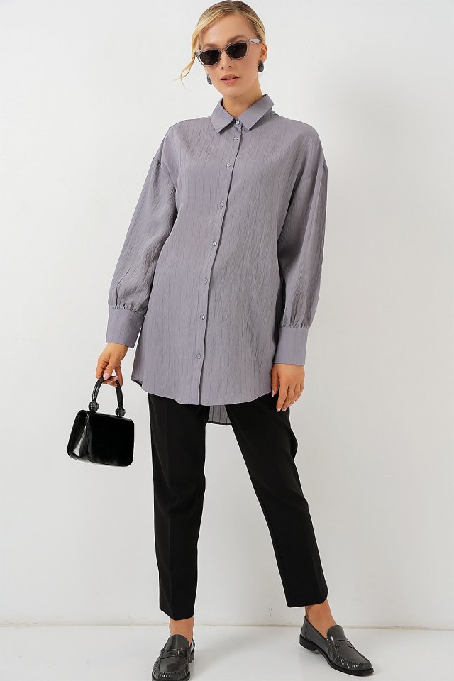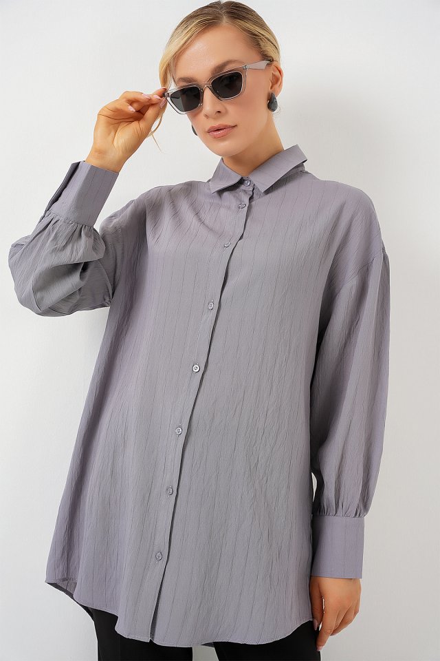 Çizgili Uzun Gömlek Tunik 5963 - Turkuaz